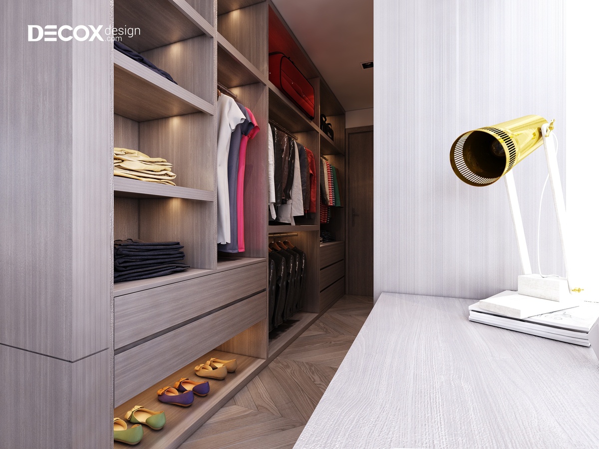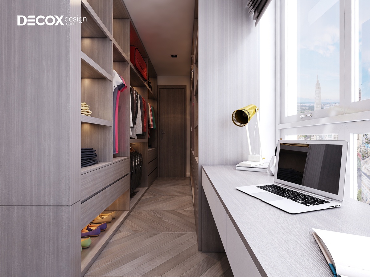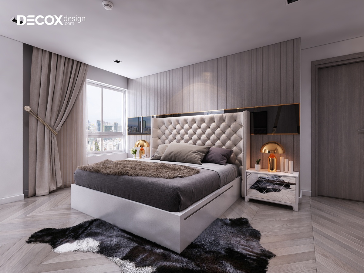 Nếu bạn là người yêu không gian lãng mạn thì mẫu thiết kế nội thất chung cư này sẽ chinh phục bạn ngay từ cái nhìn đầu tiên. Kết hợp gam màu be trang nhã với những điểm xuyến tông màu ấm, căn hộ bật lên phong cách sang trọng và cao cấp cho gia chủ. Không những vậy, cách sáng tạo nhiều khoảng không gian riêng như ghế đọc sách, góc chọn quần áo hay bàn làm việc nhỏ gần cửa sổ giúp căn độ tiện nghi và đa dụng hơn.