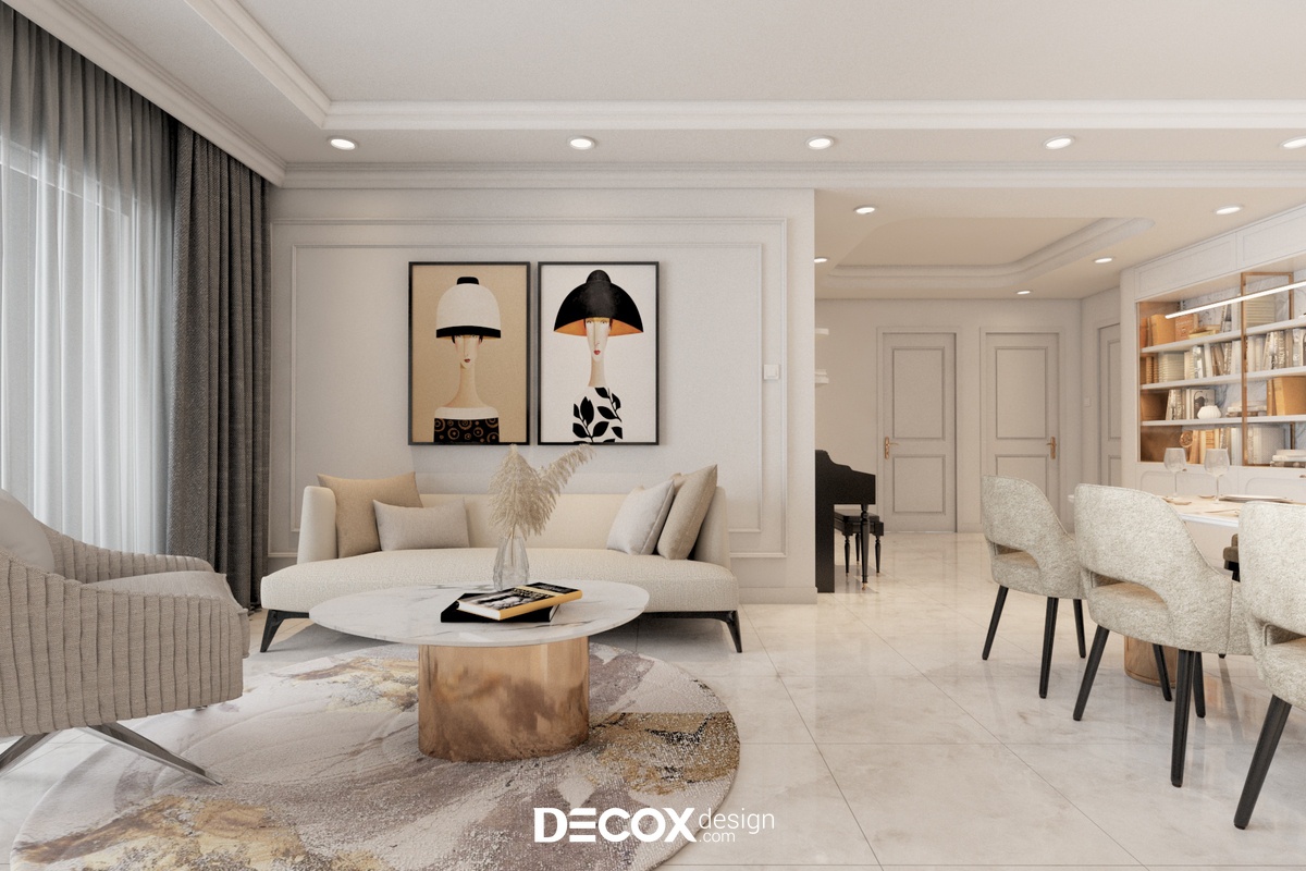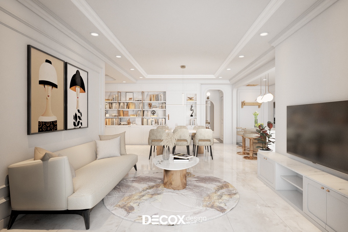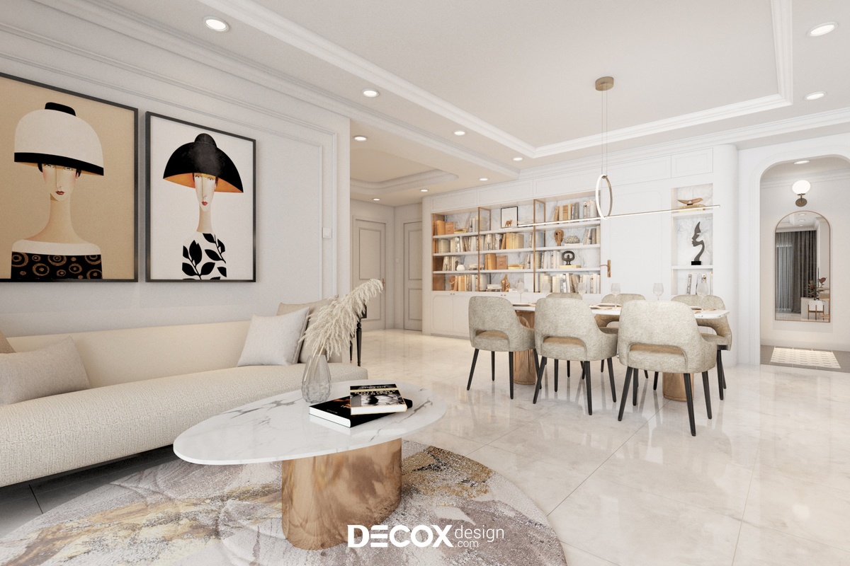 Căn hộ 3 phòng ngủ của dự án Sunrise City View được Decox Design thiết kế theo phong cách Bán cổ điển. Đây là dự án được gia chủ ưa chuộng nhờ dung hòa được vẻ đẹp hiện đại và vẻ đẹp cổ điển của kiến trúc và nội thất phương Tây. Thiết kế nội thất chung cư theo phong cách này sẽ thích hợp những loại hình nhà ở có diện tích vừa đến lớn để thể hiện được nét đẹp của phong cách trên.