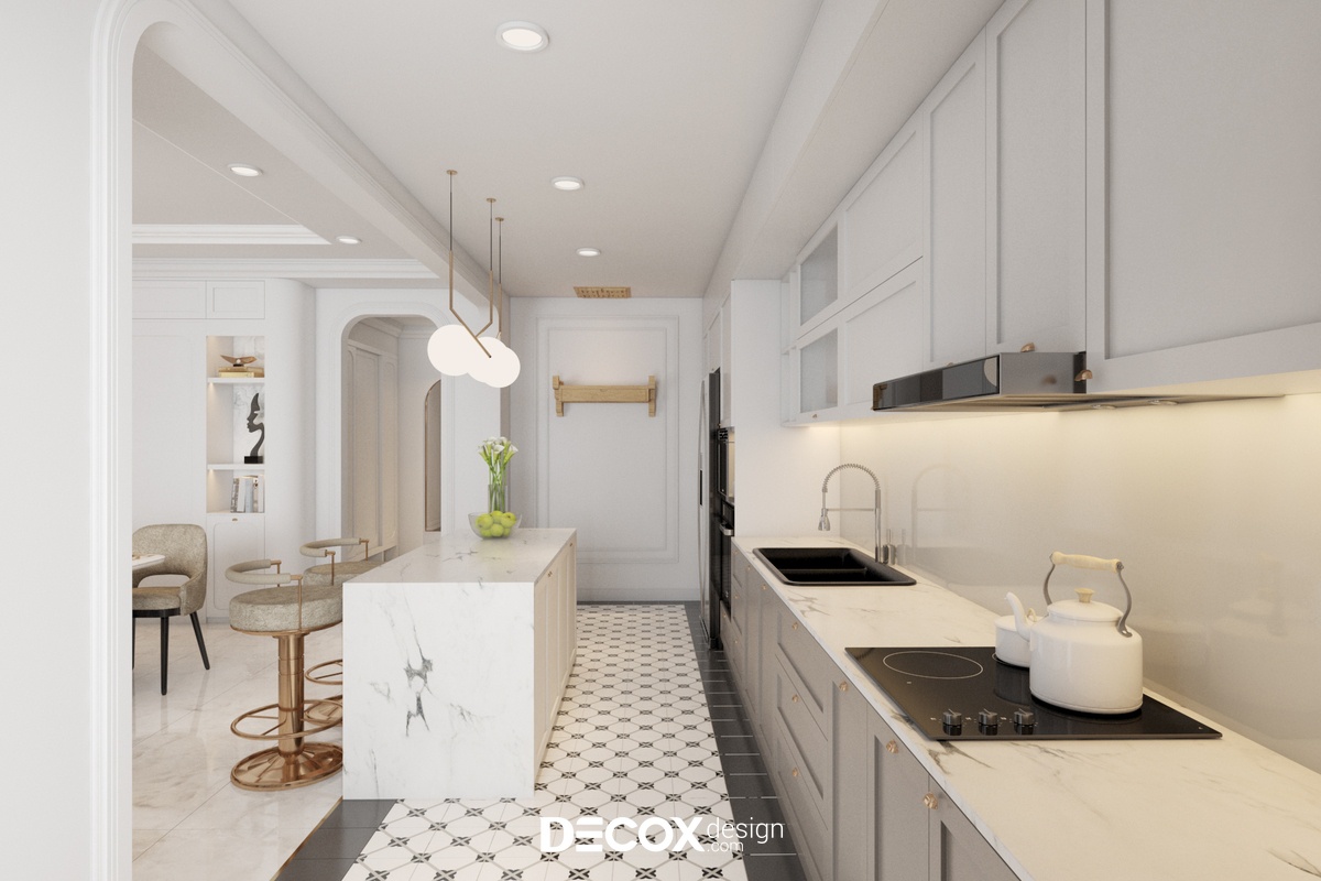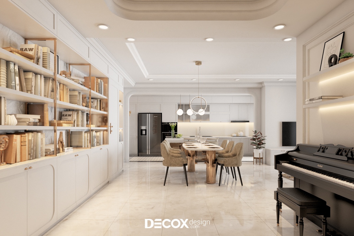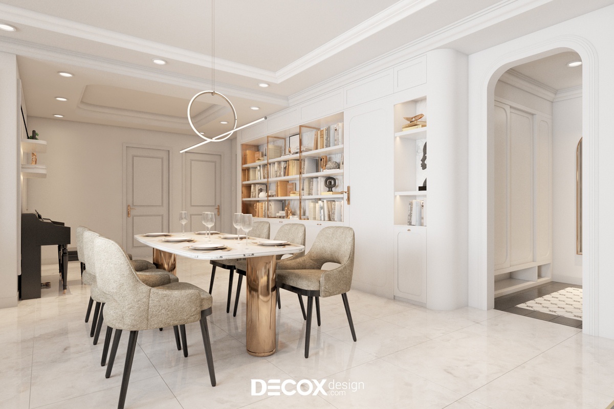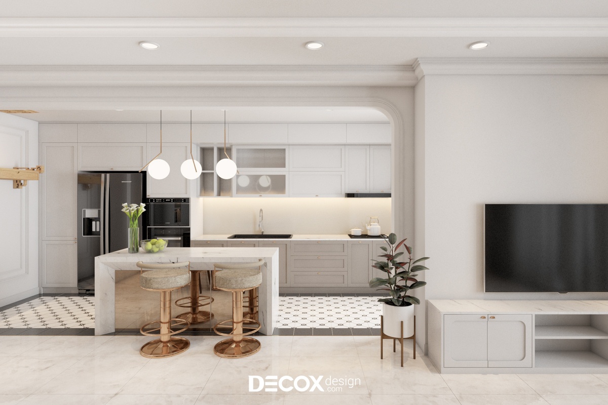 Căn hộ 3 phòng ngủ của dự án Sunrise City View được Decox Design thiết kế theo phong cách Bán cổ điển. Đây là dự án được gia chủ ưa chuộng nhờ dung hòa được vẻ đẹp hiện đại và vẻ đẹp cổ điển của kiến trúc và nội thất phương Tây. Thiết kế nội thất chung cư theo phong cách này sẽ thích hợp những loại hình nhà ở có diện tích vừa đến lớn để thể hiện được nét đẹp của phong cách trên.