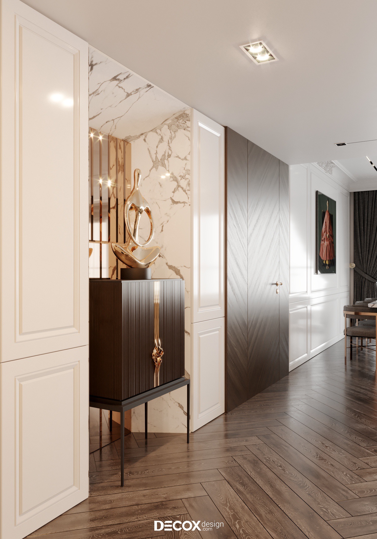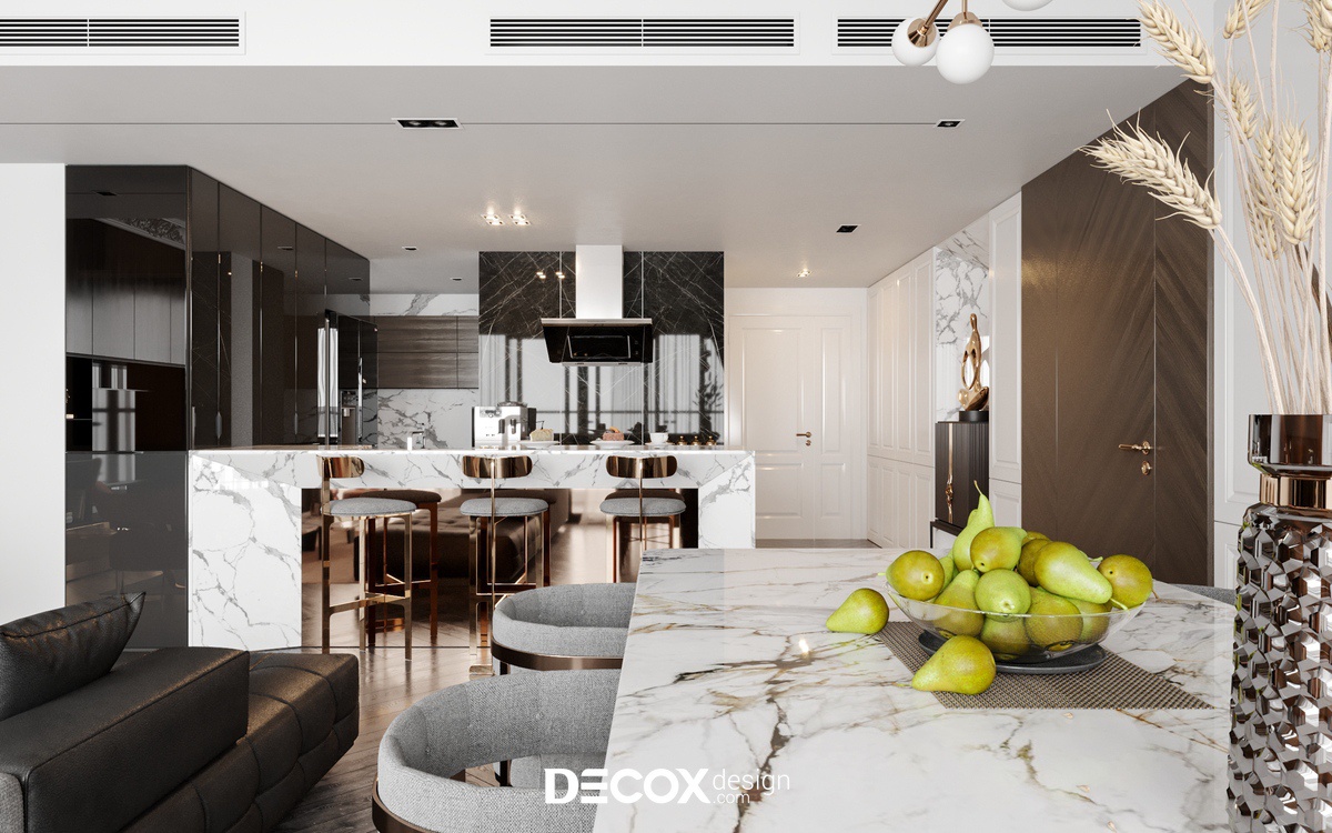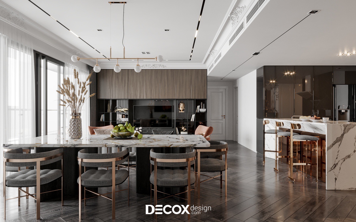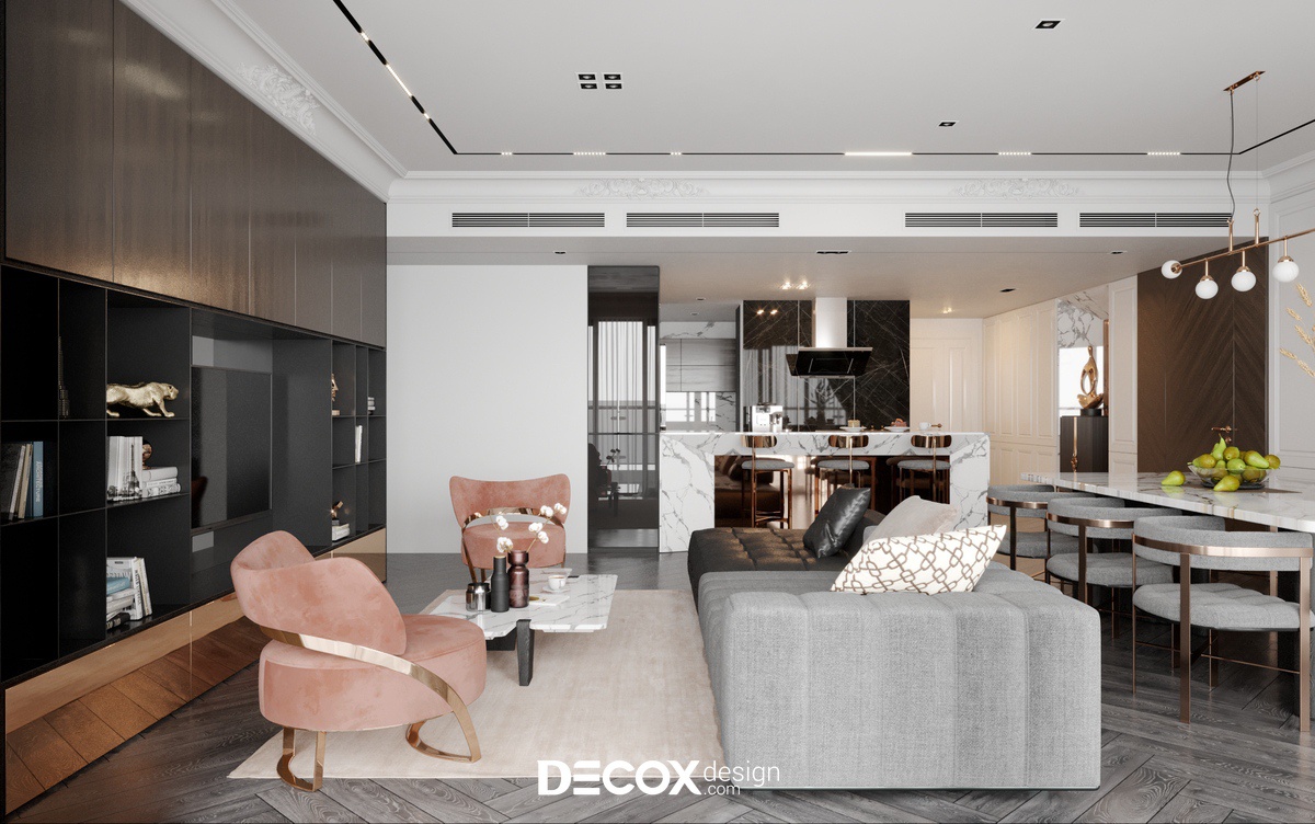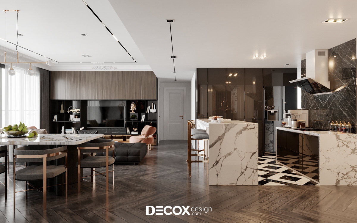 Căn hộ tại dự án The Estella - Quận 2 được thiết kế nội thất chung cư theo phong cách Bán cổ điển. Gỗ và đá được sử dụng rất nhiều trong nội thất của căn hộ này làm cho không gian thể hiện được chất sang trọng của phong cách này. Hơn nữa, “chất liệu” là một trong những yếu tố quan trọng quyết định nên sự thành công trong một công trình, Decox Design tin rằng những chất liệu khác nhau sẽ cho chúng ta có những cảm nhận khác nhau, để mỗi căn nhà đều có thể kể nên “câu chuyện” của riêng mình.