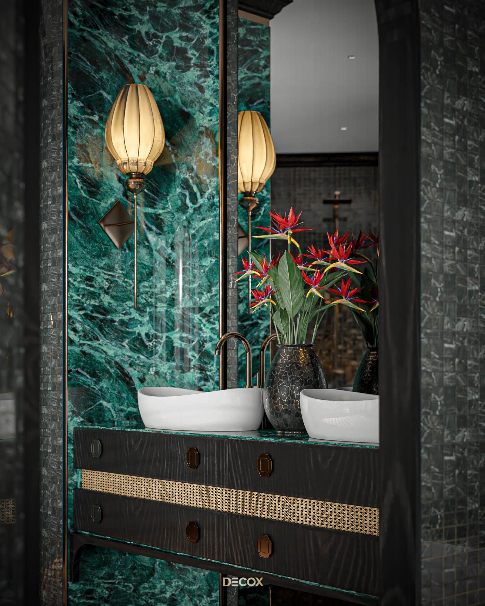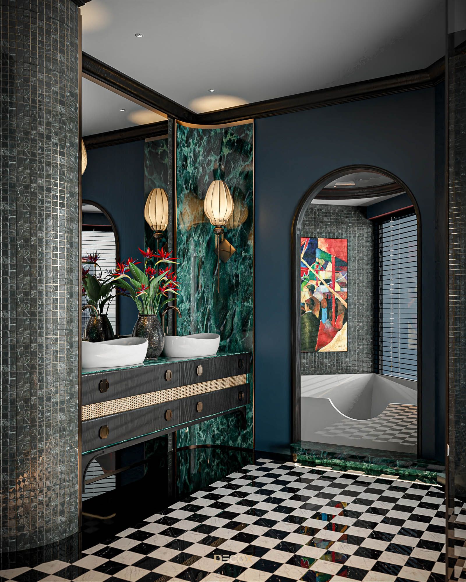 Đến với không gian phòng tắm trong dự án Zeit Thủ Thiêm, bạn sẽ được hòa mình vào “thế giới” của các loại đá từ đá mosaic, đá ombre cho đến đá emerald green marble kiêu sa, quyến rũ. Tất cả đã tạo nên một “hương vị” rất riêng cho không gian này, có hoài cổ, có truyền thống nhưng trên hết chính là sự hiện đại, mang hơi hướng tương lai, không trộn lẫn vào đâu được.