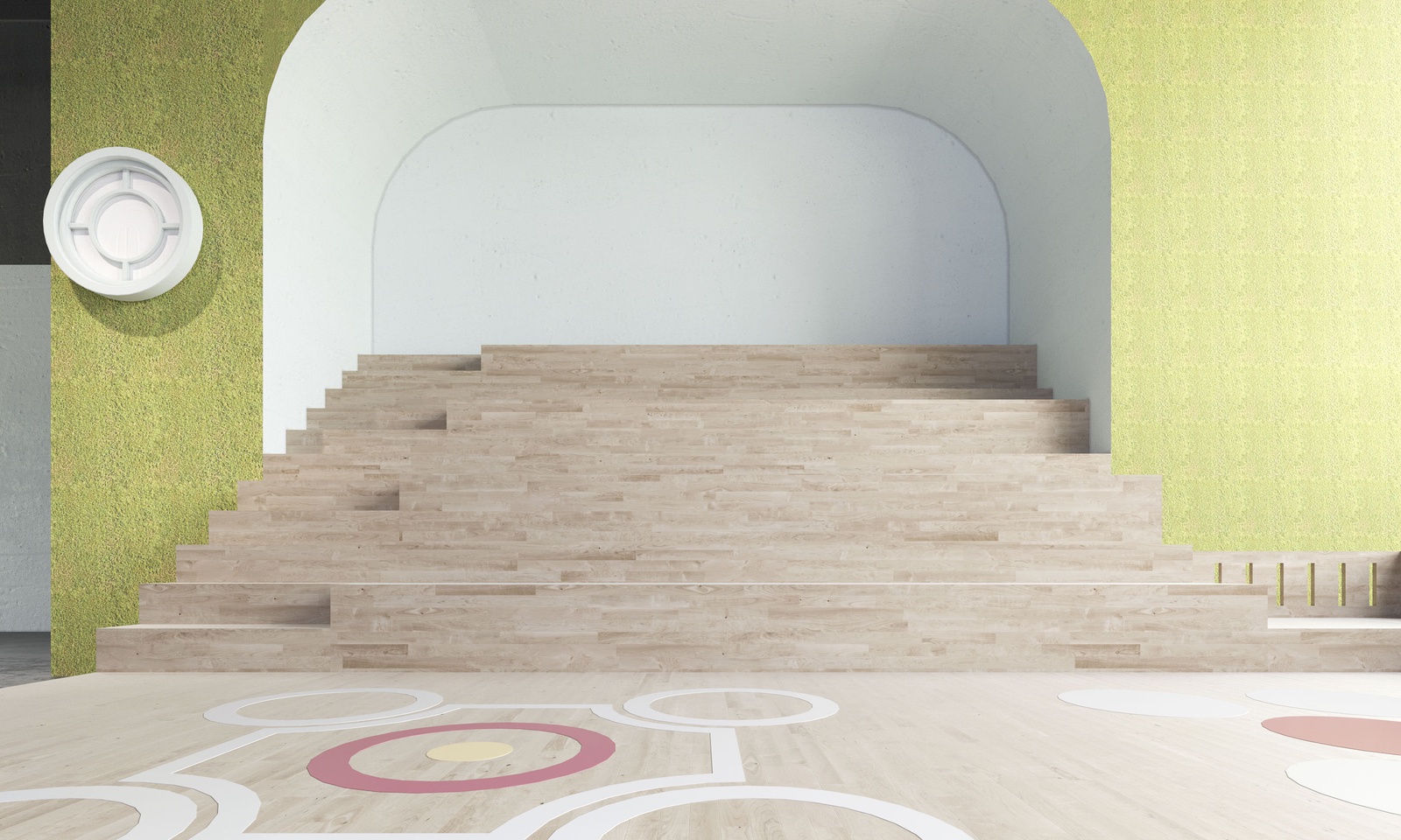 Được thiết kế như một hội trường thu nhỏ với phần “sân khấu” có máy chiếu và hệ bậc thang gỗ được dùng để làm chỗ ngồi. Đây là nơi dùng để phục vụ cho các sự kiện trong công ty như diễn thuyết, giải trí hay còn có thể sử dụng như một phòng họp “mở” đầy cảm hứng.