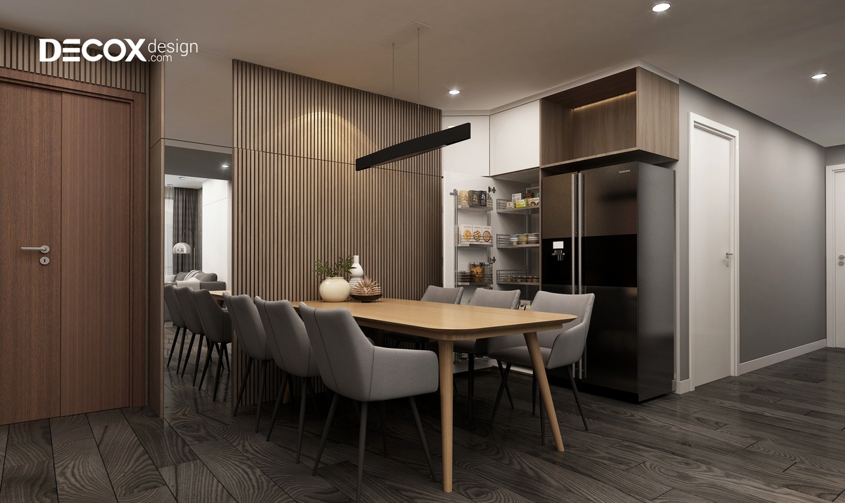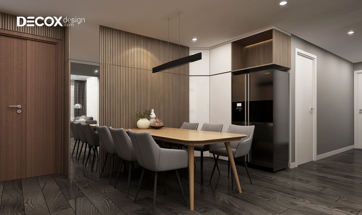 Căn hộ Vinhomes Landmark 188m2 một căn hộ sang trọng, thời thượng và vượt trội về tiện ích. Đây là mẫu thiết kế nội thất chung cư, Decox Design hứa hẹn sẽ mang đến cho cư dân thành phố nhiều trải nghiệm thật đẳng cấp. Sự kết hợp độc đáo giữa những gam màu hiện đại, nhẹ nhàng cùng với bố cục sắp xếp khoa học đã giúp cho thiết kế nội thất căn hộ Vinhomes Landmark 188m2 de190021 trở nên mềm mại, thanh thoát. Đặc biệt, không gian mỗi khu vực được tách biệt rõ ràng nhưng vẫn đảm bảo sự liên kết vô cùng chặt chẽ. Ngoài ra, không gian hiền hòa và ngập tràn các tiện ích xanh luôn lan tỏa khắp mọi nơi trong căn hộ.