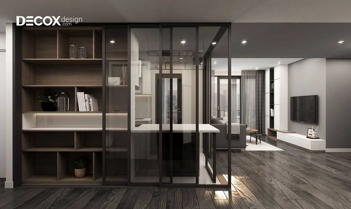 Sự sáng tạo trong lựa chọn và sử dụng chất liệu kính đã giúp cho thiết kế nội thất của phòng trở nên hiện đại và vô cùng độc đáo. Việc thay thế các mảng tường bằng vách kính cường lực đã tạo nên một điểm nhấn tinh tế nhờ đó mà gia chủ có được một không gian thoáng đãng và có tầm quan sát rộng.