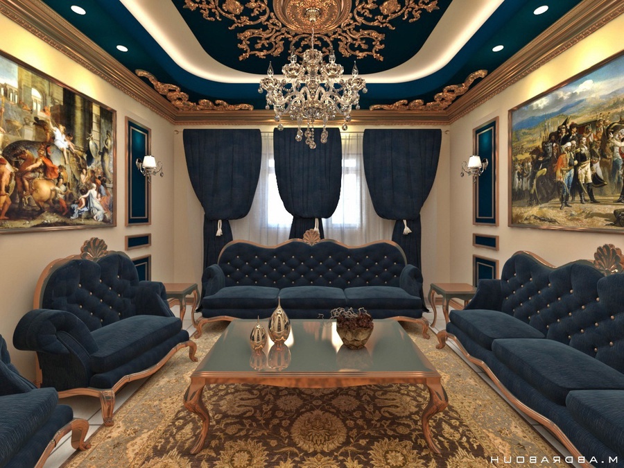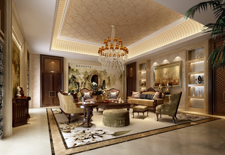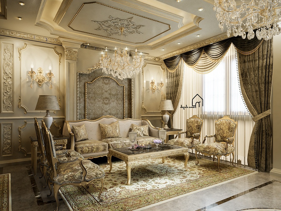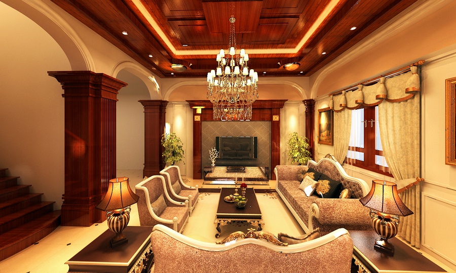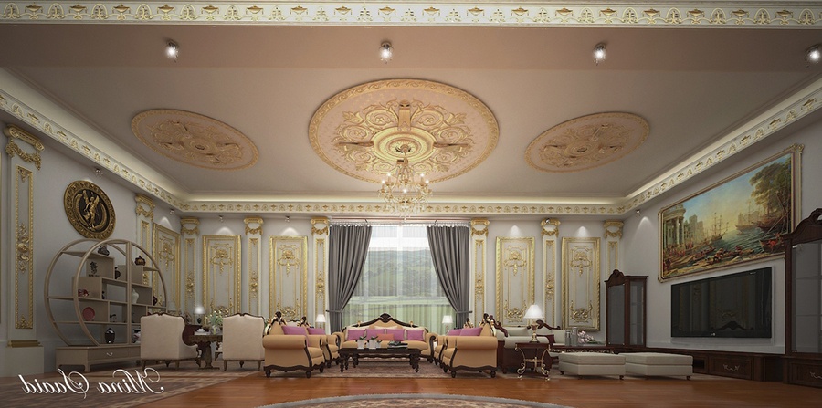 Tô điểm cho phòng khách phong cách cổ điển Châu Âu chính là những chiếc đèn chùm được thiết kế vô cùng cầu kỳ. Trong một phòng khách cổ điển thường có những bức tranh lớn được treo trên tường cùng với những đường nét hoa văn tinh tế cầu kỳ. Bàn ghế phòng khách cổ điển cũng được thiết kế sang trọng với nhiều đường cong chi tiết mềm mại. Phòng khách lớn thường dùng để diễn ra các cuộc họp quan trọng và tiếp đón khách ghé thăm. Bạn sẽ bị choáng ngợp và mê mẩn những chiếc ghế sofa lớn và đồ sộ, cùng với những chi tiết chạm trổ trên ghế rất cầu kỳ công phu. Một trong những nét khác biệt của phòng khách phong cách cổ điển châu Âu đó chính là ở phòng khách cổ điển châu Âu sẽ thường sử dụng bàn tròn hơn những phong cách cổ điển khác. Bàn tròn giúp cho mọi người được gần nhau hơn và có thể quan sát được hết mọi người ngồi trong bàn. Trần phòng khách được làm từ thạch cao, dễ dàng chạm trổ với nhiều họa tiết nhỏ tỉ mỉ. Các họa tiết trên tường và trần nhà rất nhiều nhìn vào tổng thể có thể khiến rối mắt nhưng nếu chúng ta quan sát kỹ hơn và chia nhỏ thì mỗi hoa văn đều mang nét đặc trưng của giới quý tộc quyền quý. >> Xem thêm: