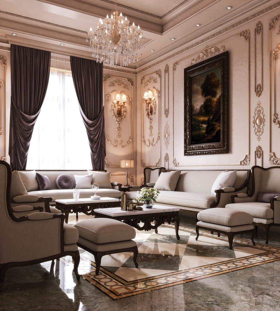 Có lẽ nhờ sự kết hợp những tinh hoa kiến trúc từ hai quốc gia có nền kiến trúc cổ đại hoành tráng này đã tạo nên phong cách cổ điển với những tuyệt tác phòng khách đẹp nao lòng, hoàn hảo trong từng chi tiết và đạt tỉ lệ vàng trong thiết kế.