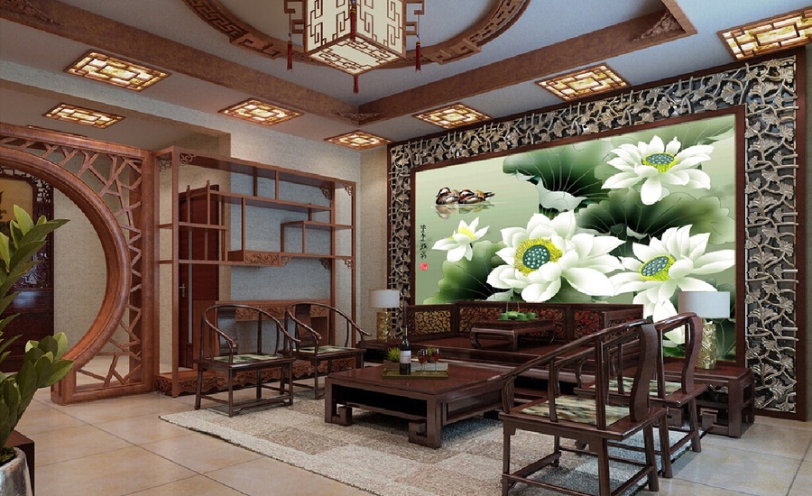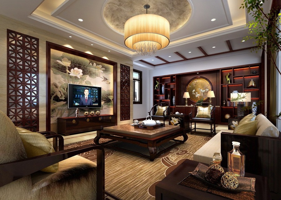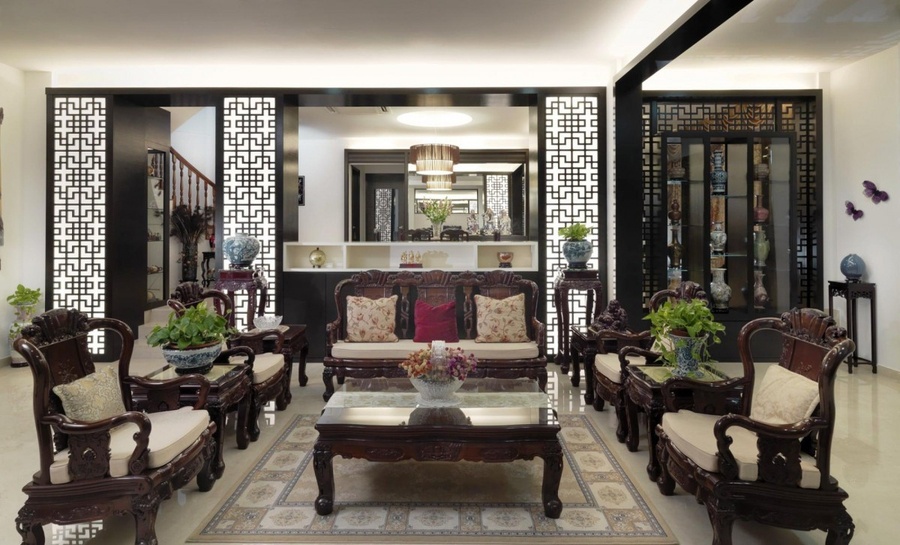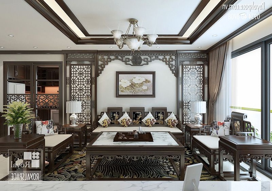 Nội thất phòng khách cổ điển kiểu Á Đông