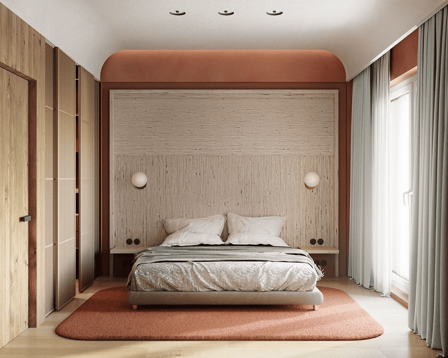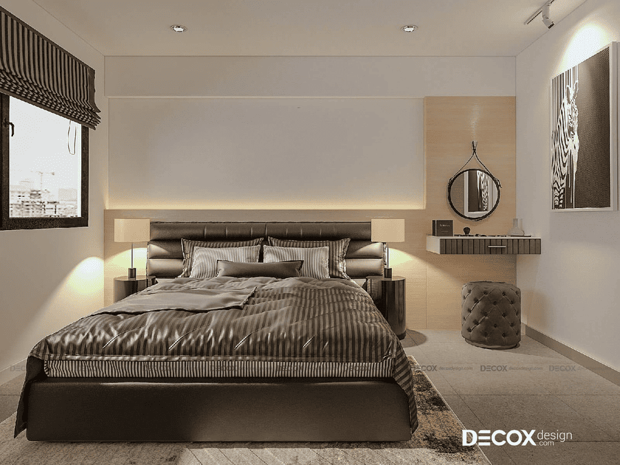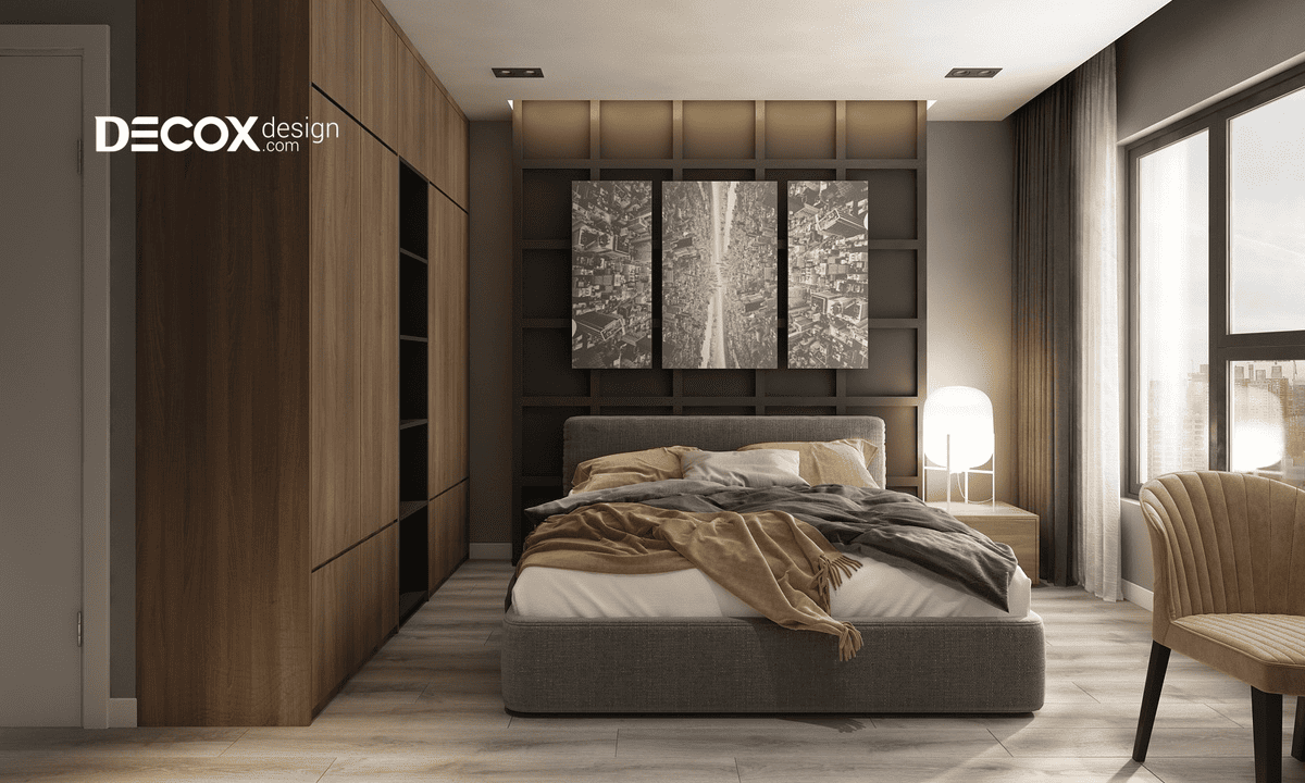 Phòng ngủ nhỏ cho vợ chồng yêu cầu cốt lõi là sự cân bằng giữa hai người, thay vì phục vụ thói quen cá nhân riêng lẻ. Khác với phòng ngủ cá nhân, bố cục cần hạn chế việc nghiêng về một phía hoặc thể hiện cá tính quá rõ của một người, nhằm giữ sự hài hòa trong sử dụng chung. Trong cấu trúc này, giường đôi thường trở thành yếu tố trung tâm, từ đó các khu vực còn lại được tổ chức xoay quanh theo bố cục đối xứng để đảm bảo sự thuận tiện và công bằng cho cả hai. Việc ưu tiên sự ổn định và riêng tư giúp phòng ngủ vợ chồng hình thành bố cục mạch lạc, giảm xung đột trong quá trình sử dụng và mang lại trải nghiệm sinh hoạt thoải mái, phù hợp cho nhu cầu ở lâu dài.