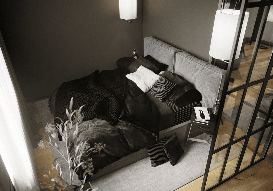 Phòng ngủ nhỏ cho nam được thiết kế theo hướng ưu tiên tính logic và hiệu quả sử dụng, trong đó phòng ngủ được xác định rõ là một không gian chức năng phục vụ nghỉ ngơi và sinh hoạt cơ bản. Bố cục không gian thường theo đơn trục, hạn chế phân mảnh để giữ sự mạch lạc và dễ kiểm soát. Trong bố cục này, giường ngủ thường đóng vai trò điểm neo, được đặt gọn và thẳng trục để định hình toàn bộ không gian xung quanh. Các khu vực chức năng được sắp xếp theo trình tự tuyến tính gồm giường - tủ - bàn, giúp việc di chuyển và sử dụng trở nên mạch lạc. Nhờ cấu trúc đơn giản, không gian có mức độ linh hoạt trung bình, cho phép thay đổi hoặc điều chỉnh bố cục khi cần.
