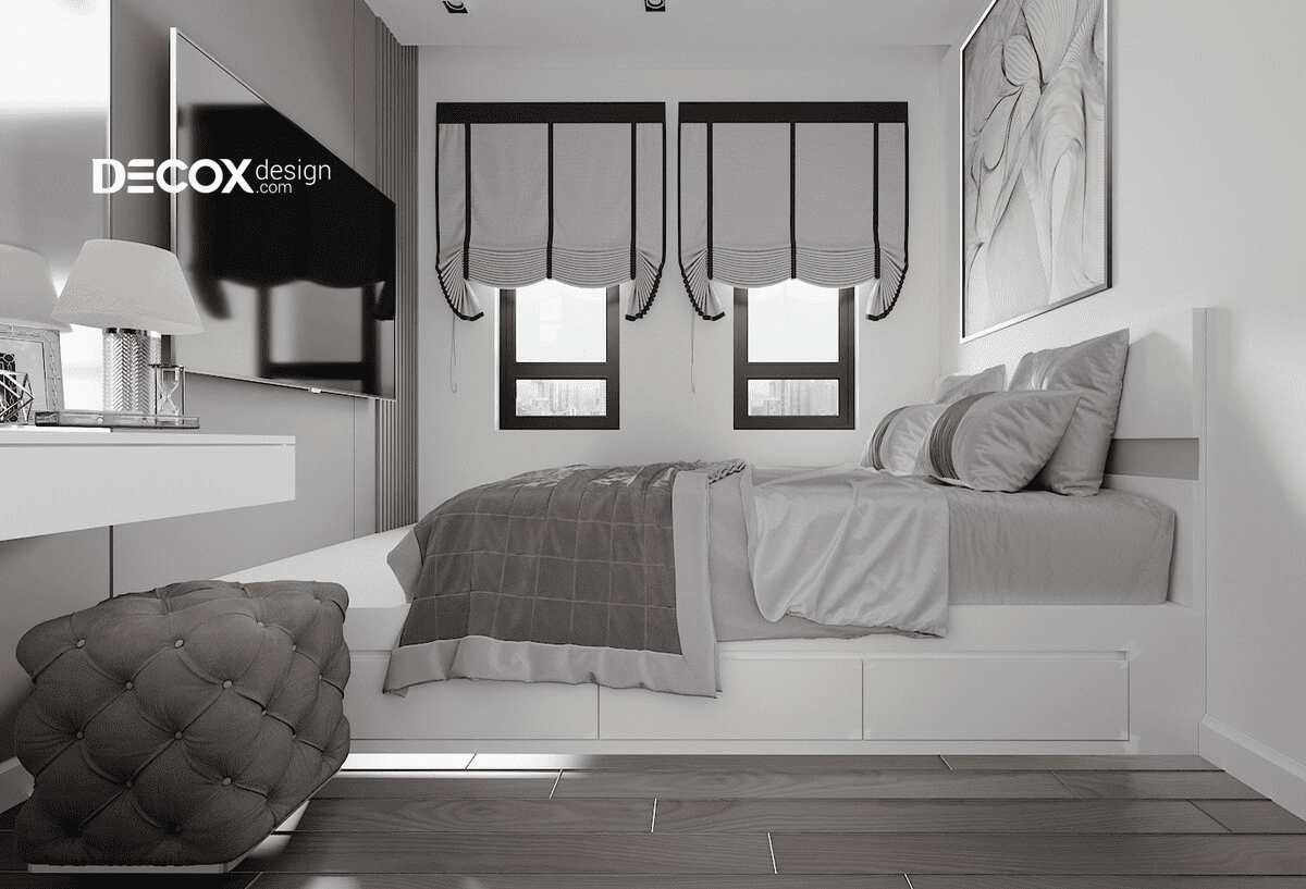 Với điều kiện này, các giải pháp giường gác lửng, giường kéo, giường gấp tường hoặc giường có hộc kéo sâu trở thành lựa chọn ưu tiên, giúp tận dụng chiều cao và giảm áp lực lên diện tích sàn. Không gian dưới giường thường được xem là khu lưu trữ chính, thay thế cho tủ đứng hoặc các món đồ rời dễ chiếm chỗ và làm rối bố cục. Các đồ rời gần như phải được loại bỏ hoàn toàn nhằm tránh cản trở lối đi và hạn chế cảm giác bừa bộn trong một không gian vốn đã rất hạn chế.