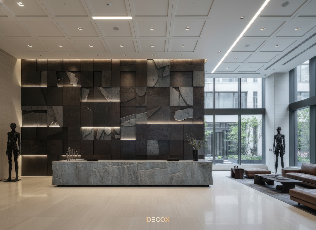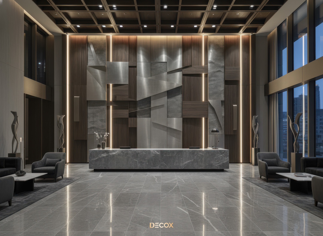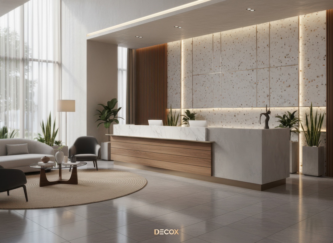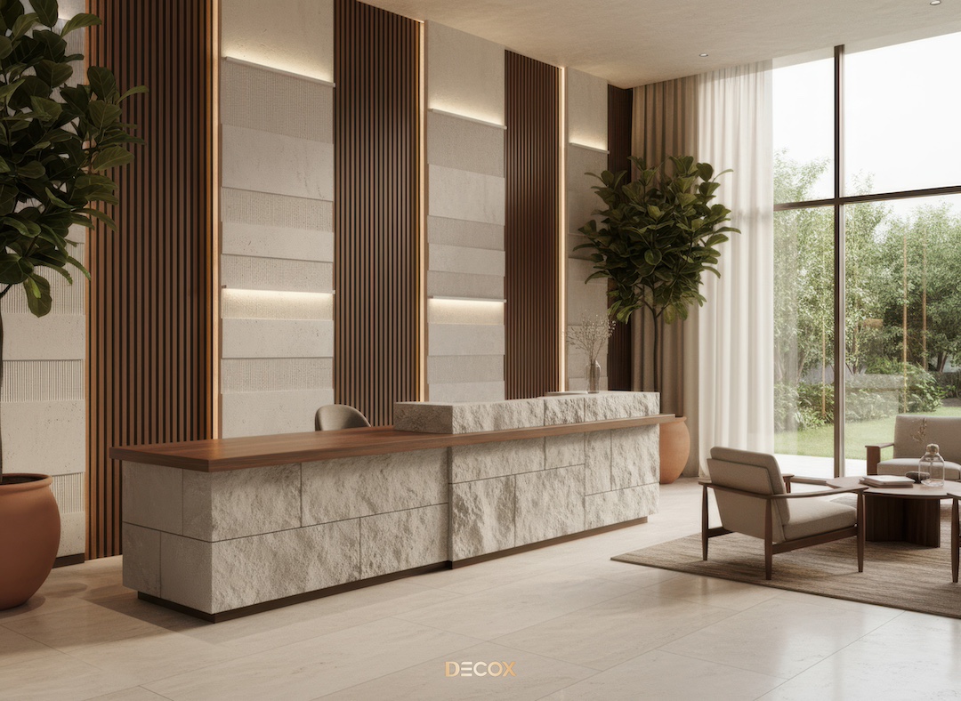 Xu hướng vật liệu thiết kế nội thất quầy lễ tân đẹp, hiện đại