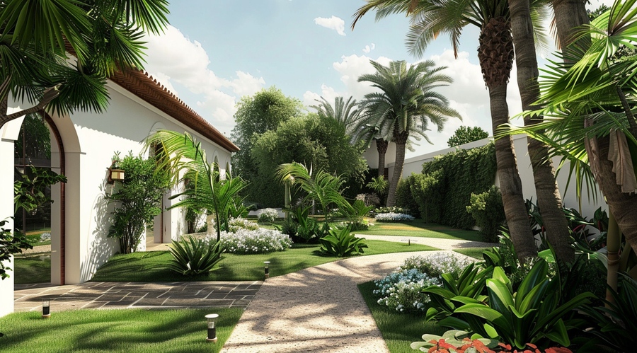 - Mẫu thiết kế sân vườn diện tích 1000m2 phong cách Địa Trung Hải