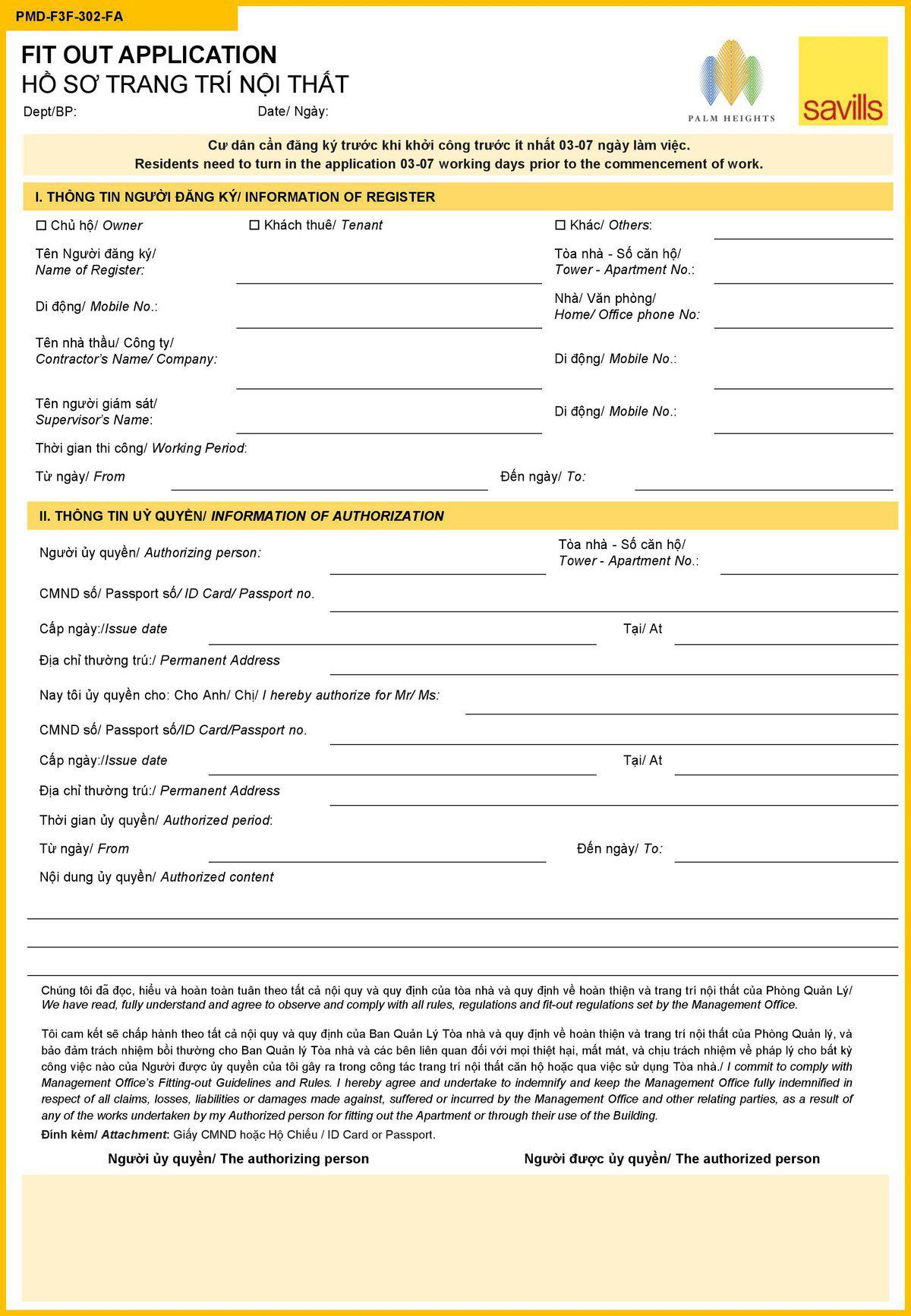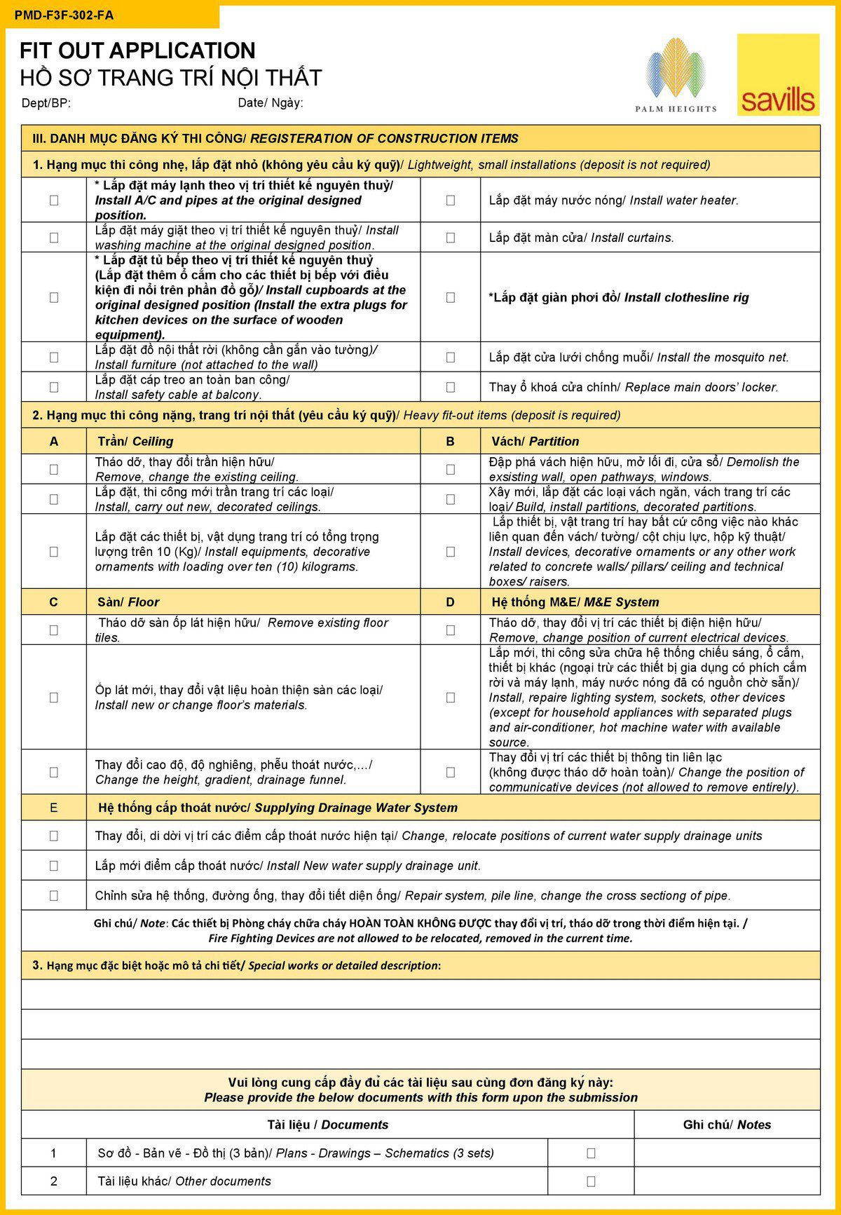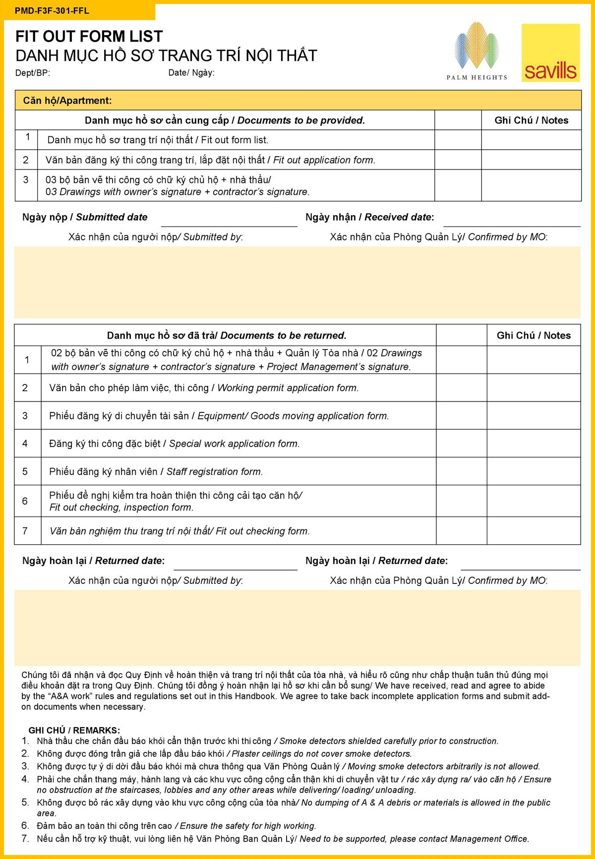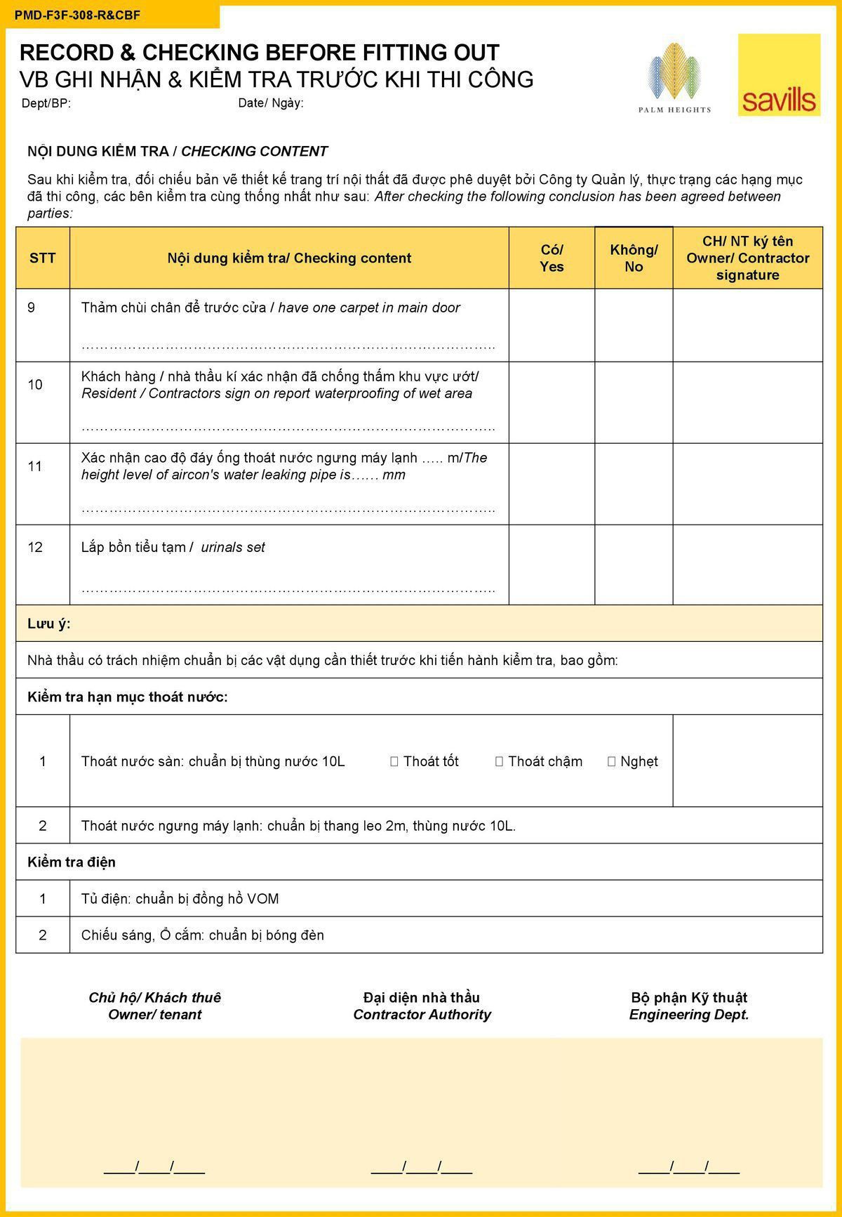 - Phiếu đề nghị kiểm tra hoàn thiện Căn Hộ.