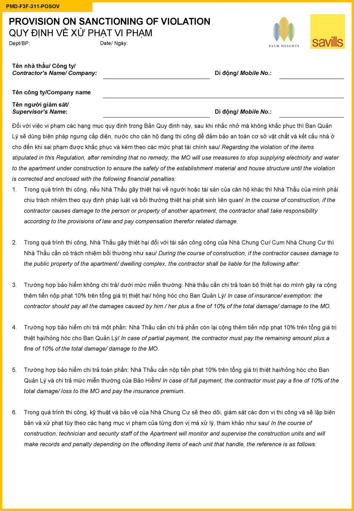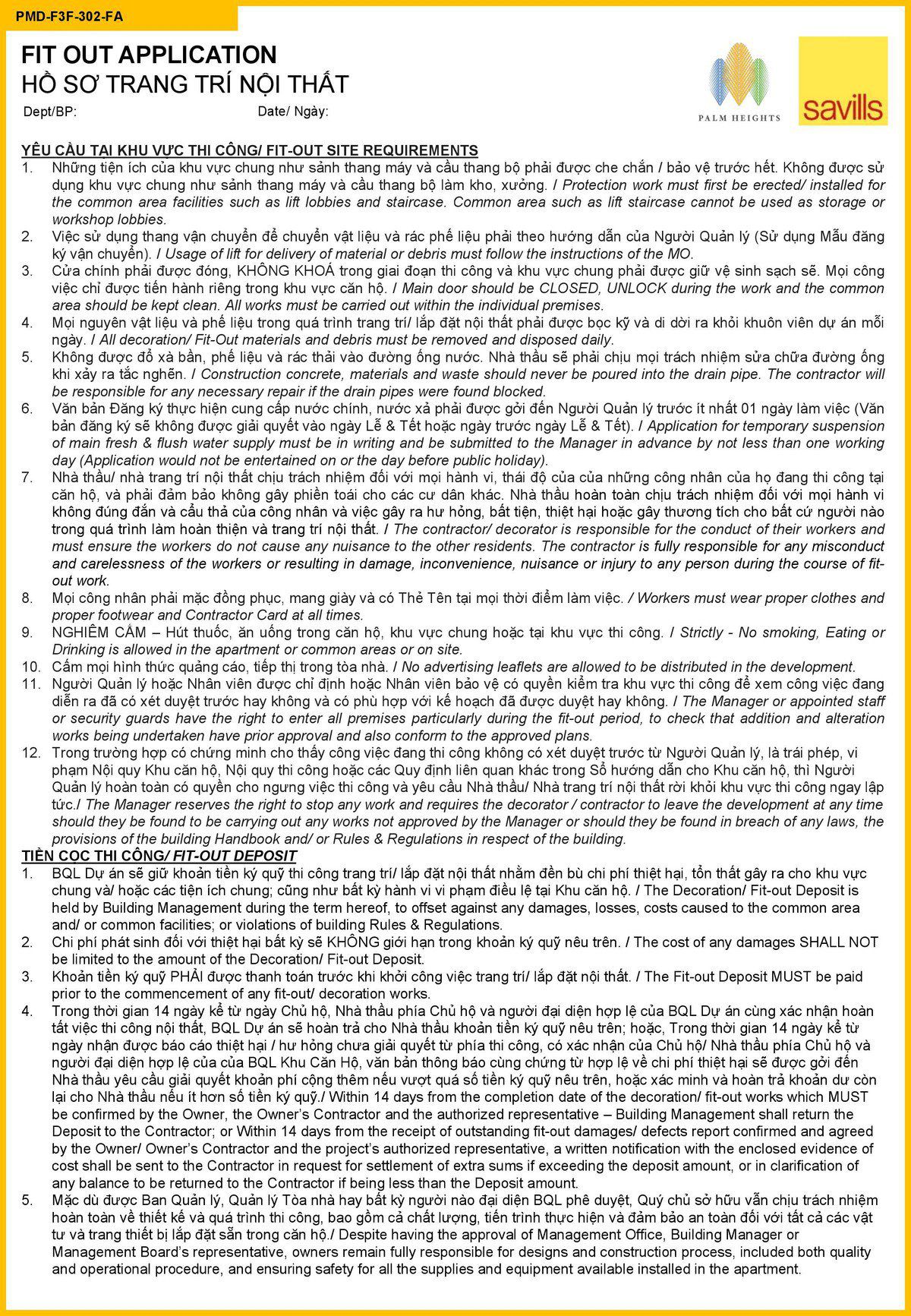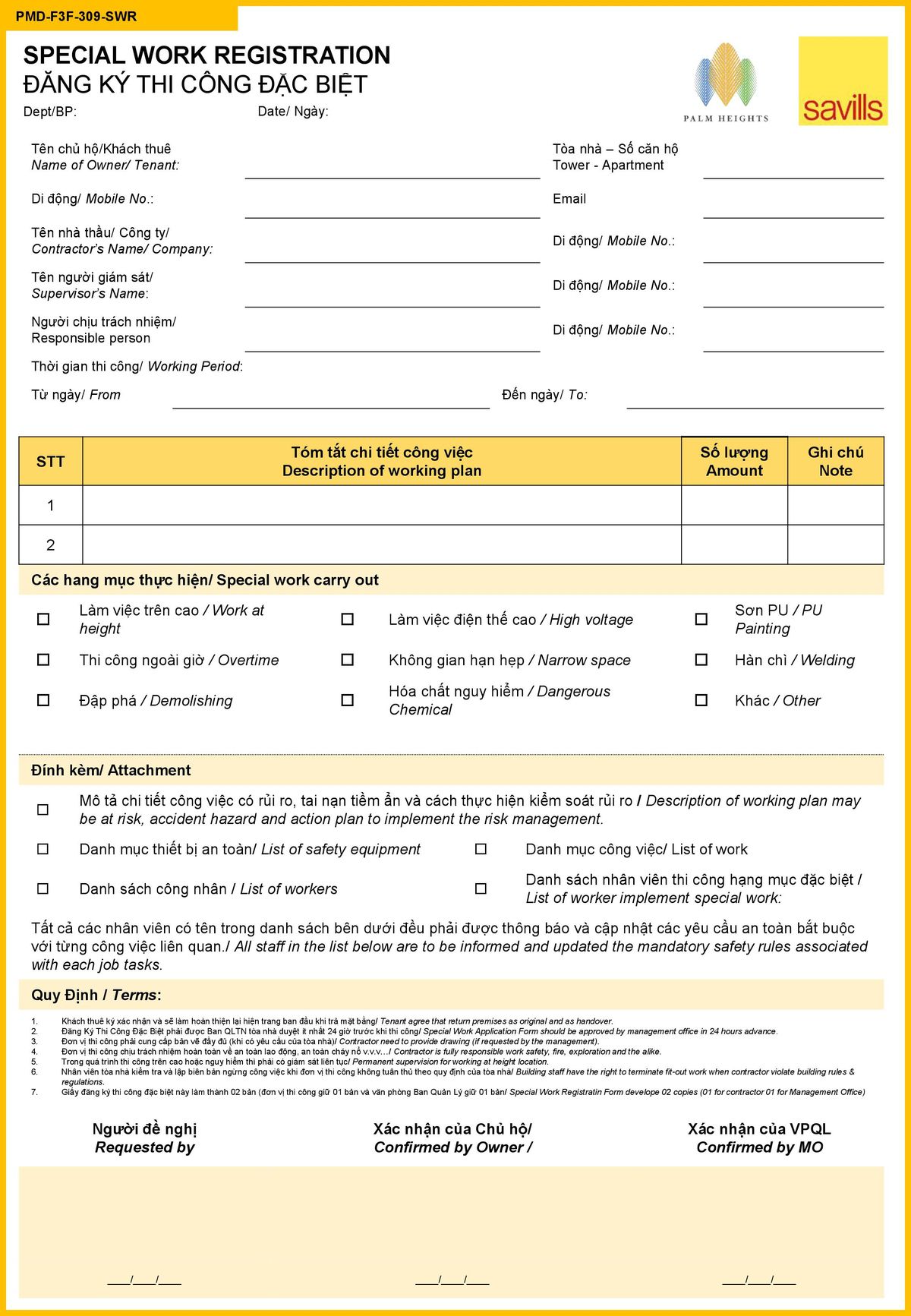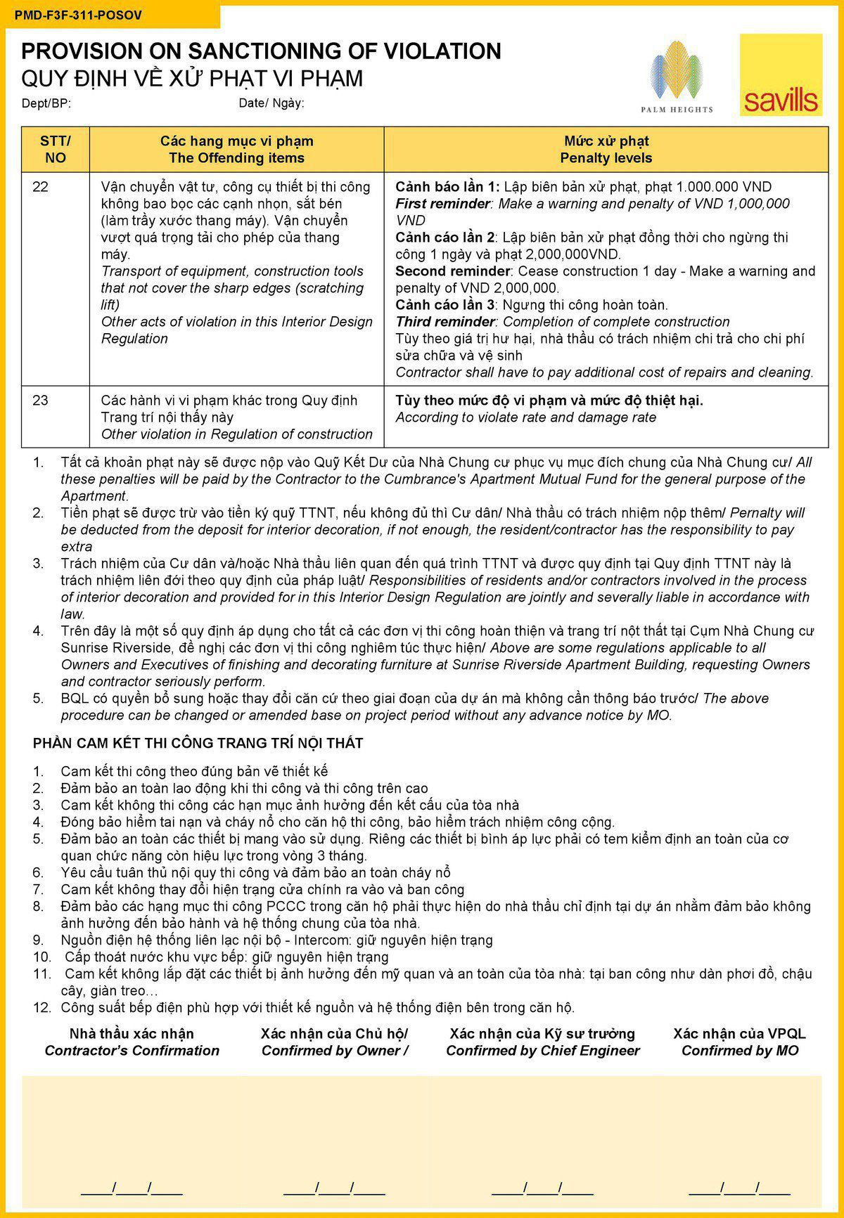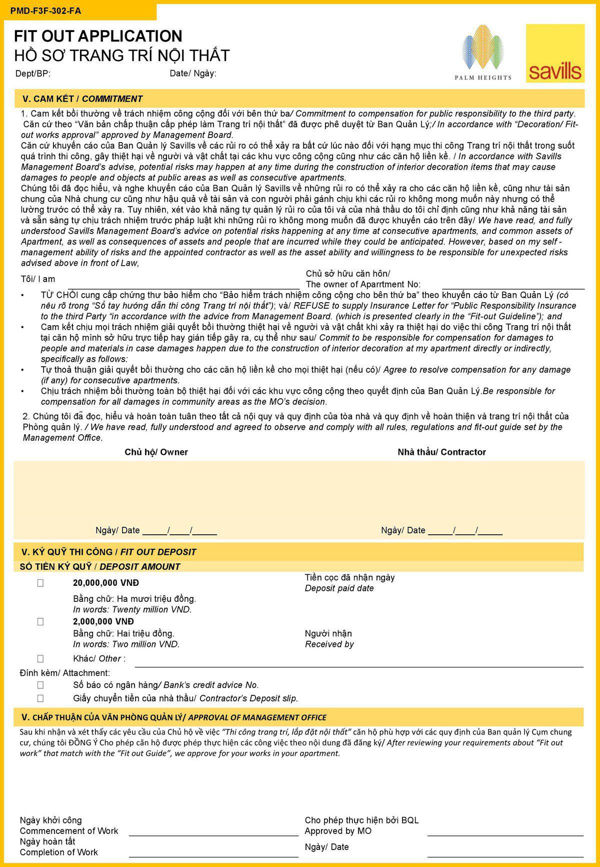 - Phiếu đề nghị kiểm tra hoàn thiện Căn Hộ.