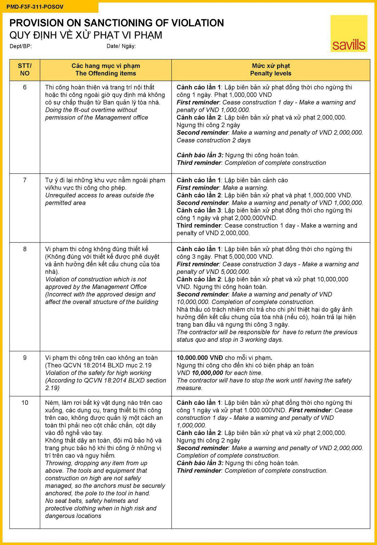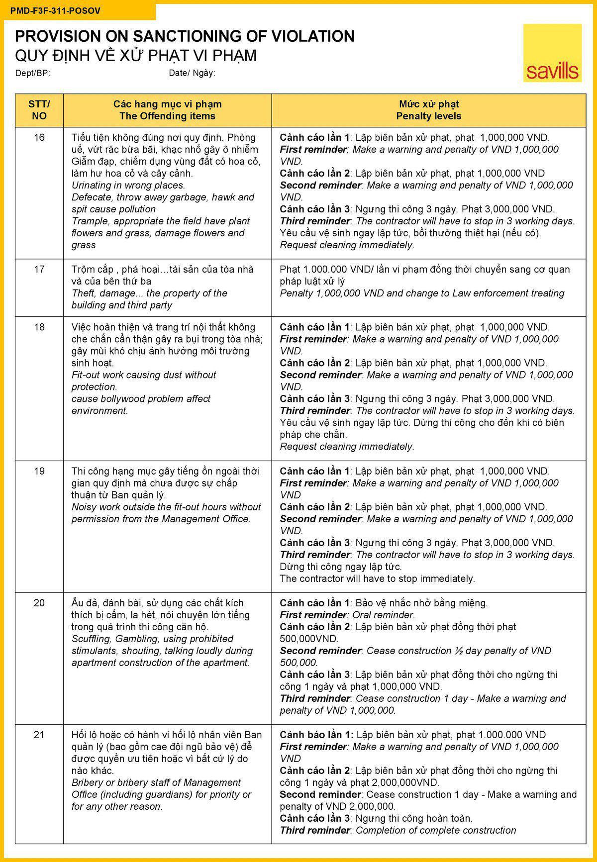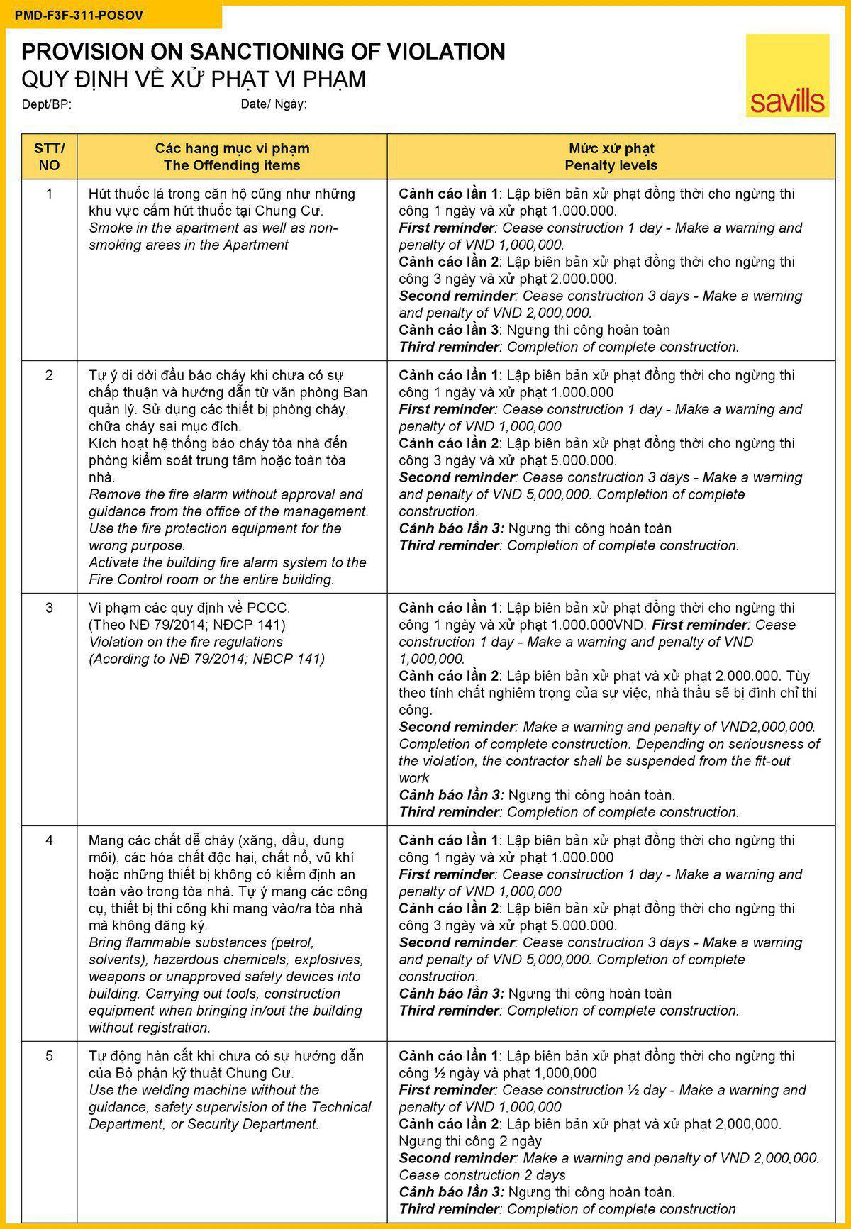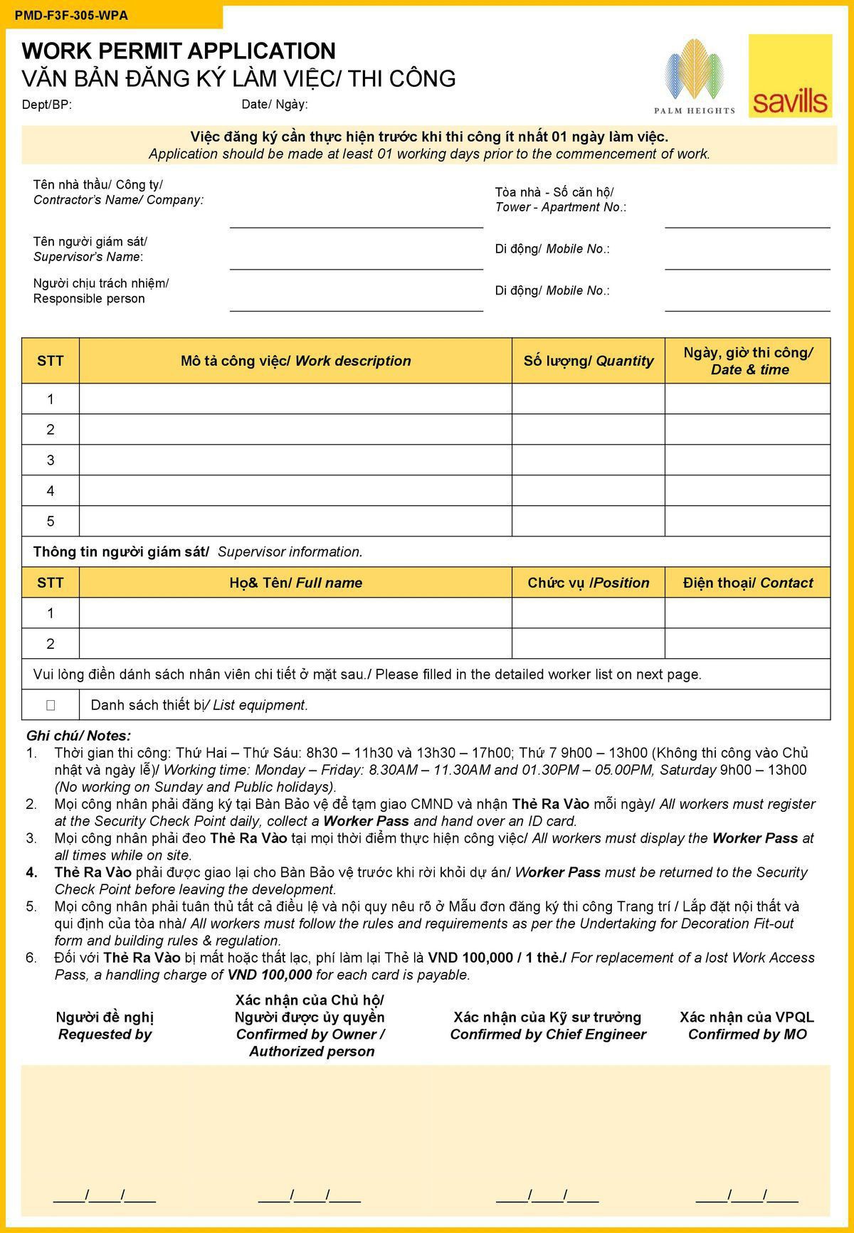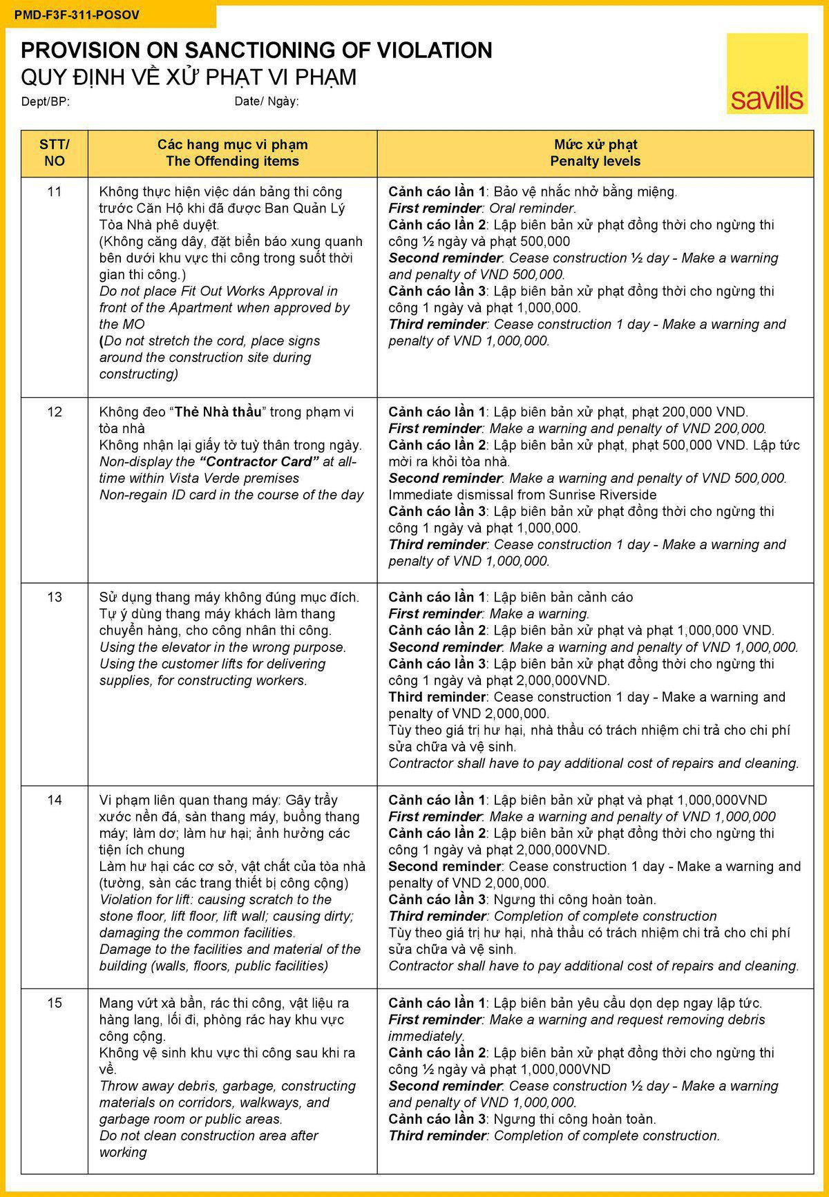 - Phiếu đề nghị kiểm tra hoàn thiện Căn Hộ.