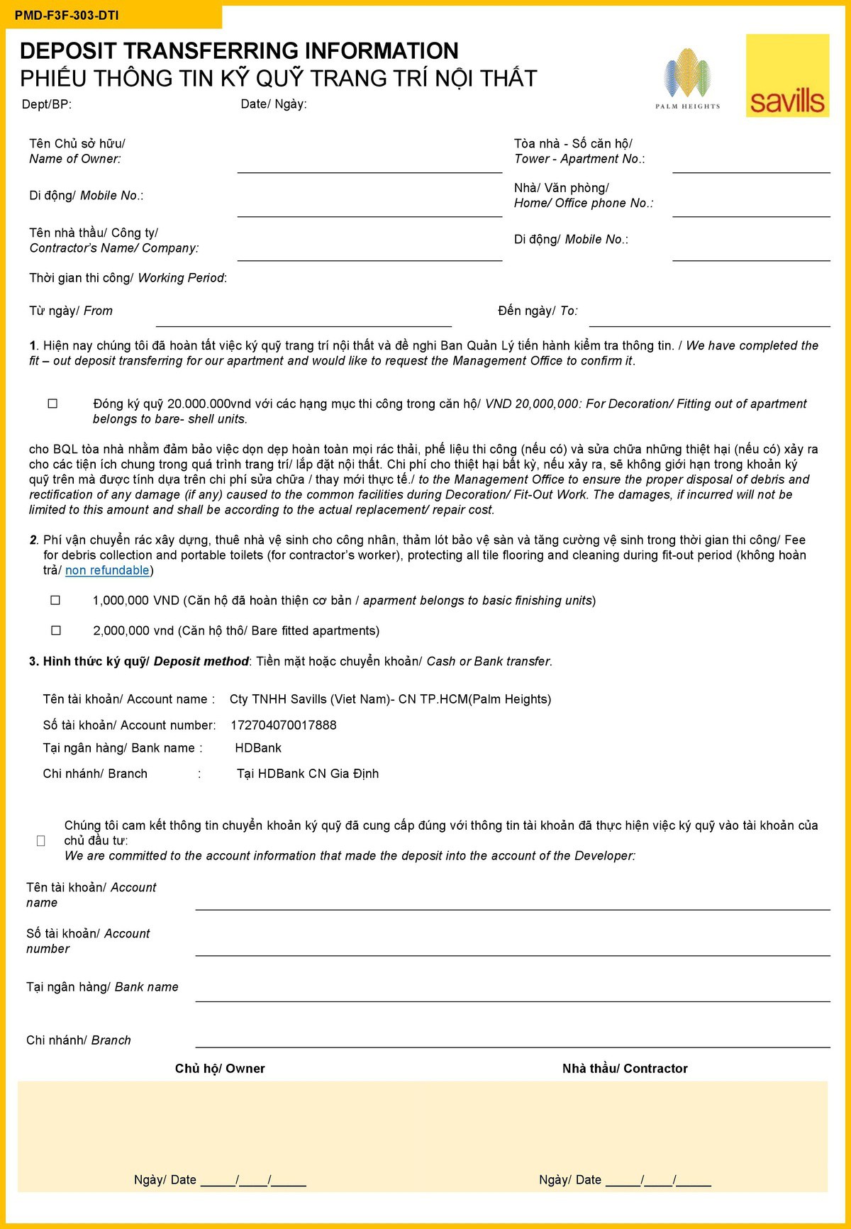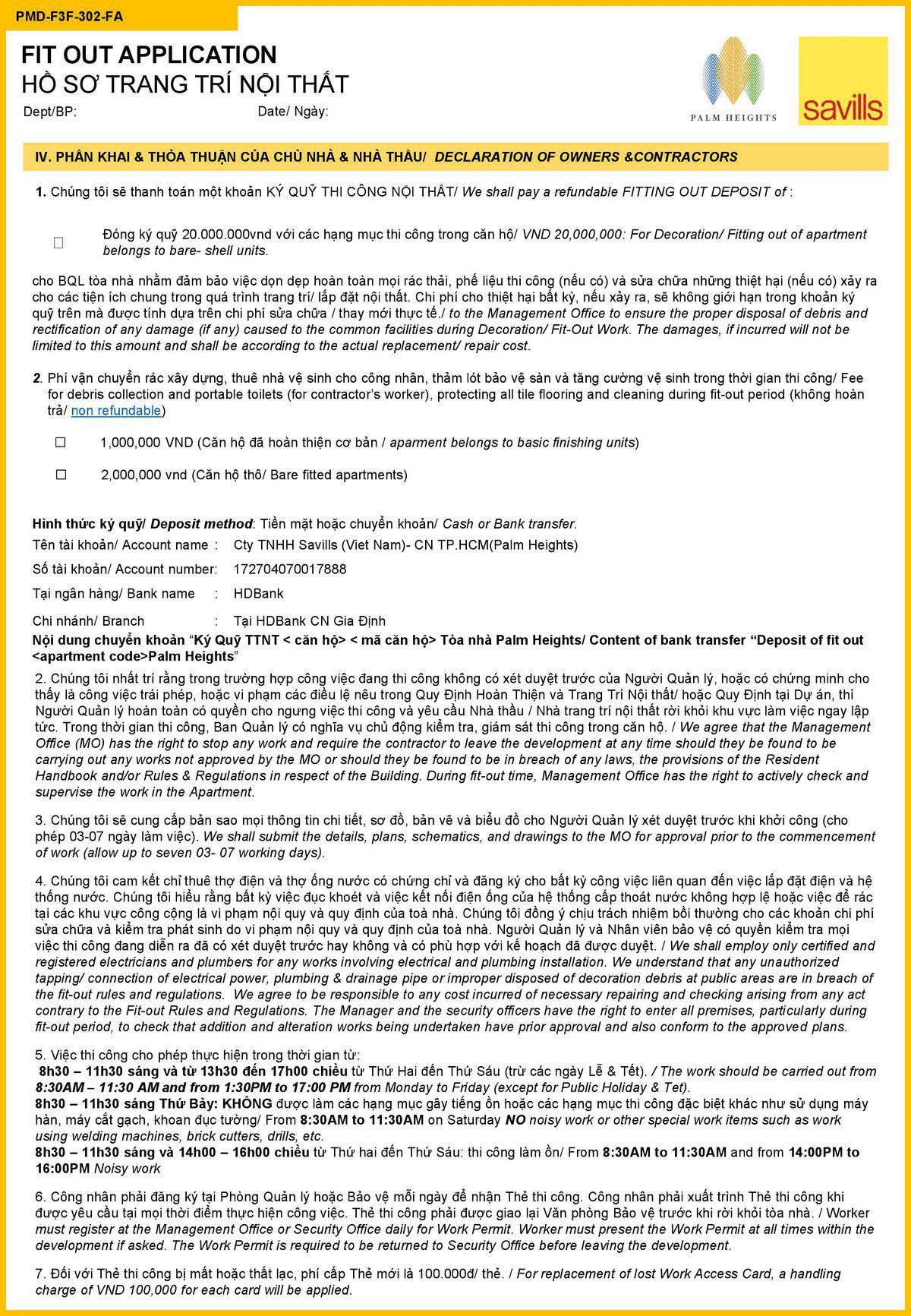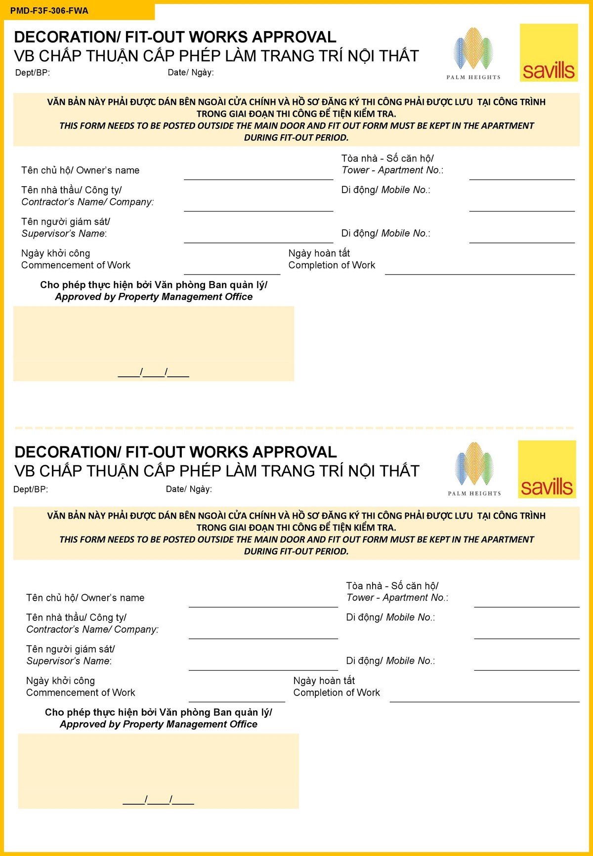 Nhưng các bước thủ tục đăng ký thi công trang trí nội thất Palm Heights phải trải qua nhiều bước và phải điền vào nhiều giấy tờ để nộp về cho Ban Quản Lý Tòa Nhà (BQLTN) quầy lễ tân tại khu vực Club House để an tâm thực hiện công đoạn thiết kế nội thất căn hộ của mình.