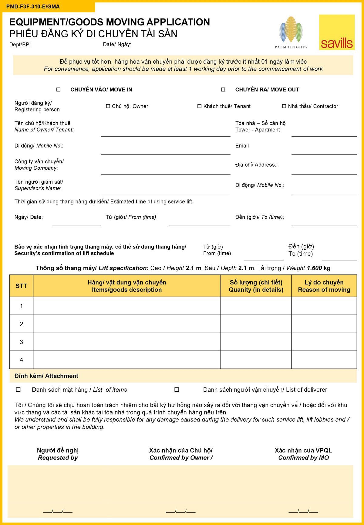 - Phiếu đăng ký di chuyển tài sản nhà thầu.