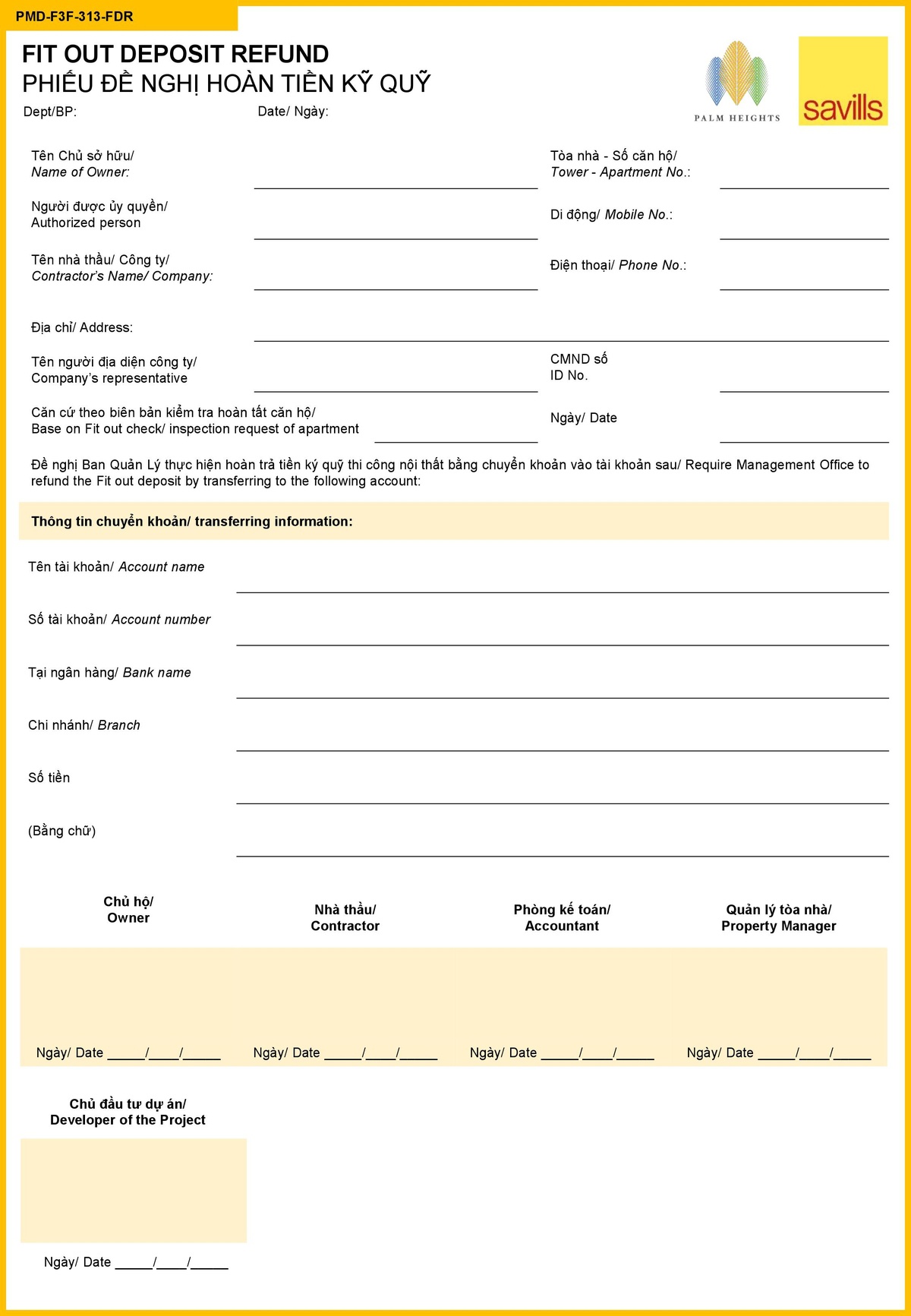 - Phiếu đề nghị hoàn tiền ký quỹ.