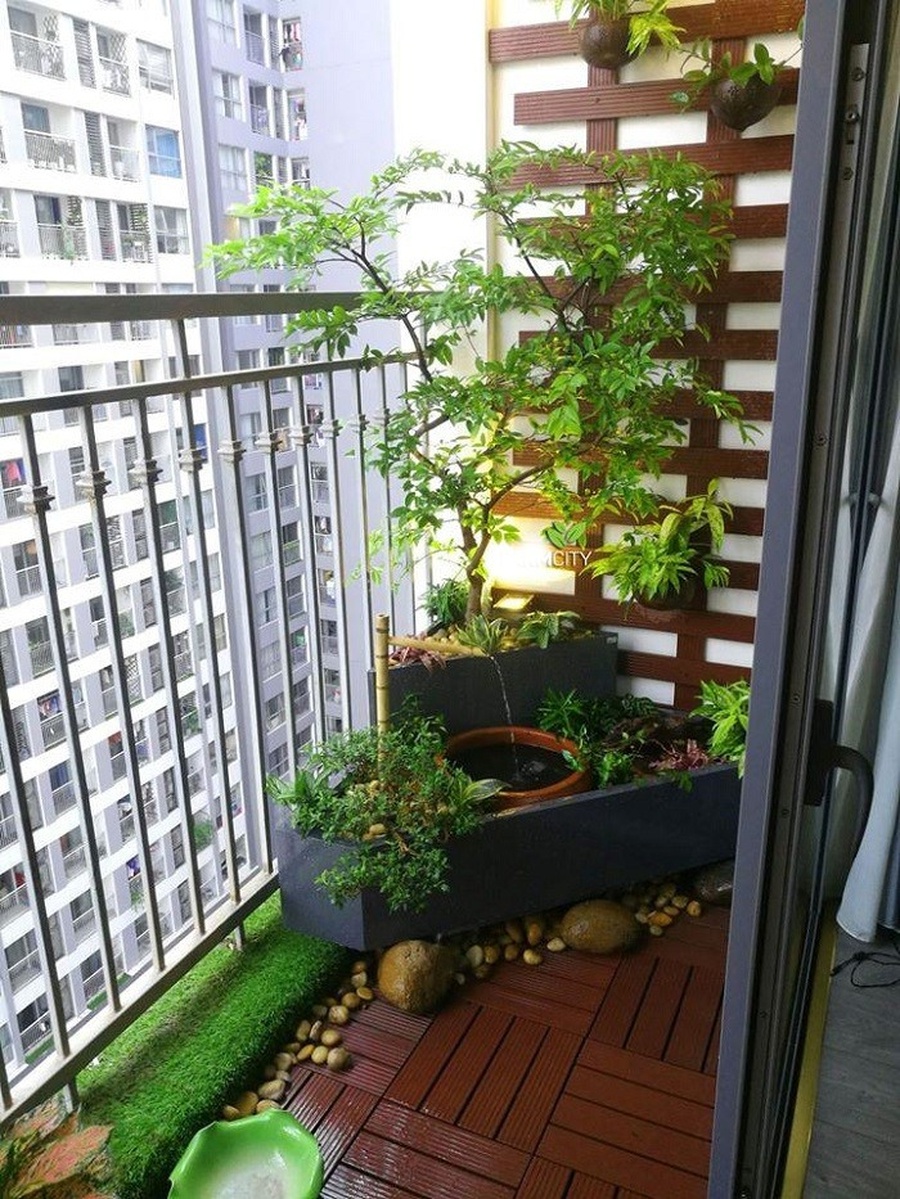 - Trang trí ban công chung cư cùng cây xanh