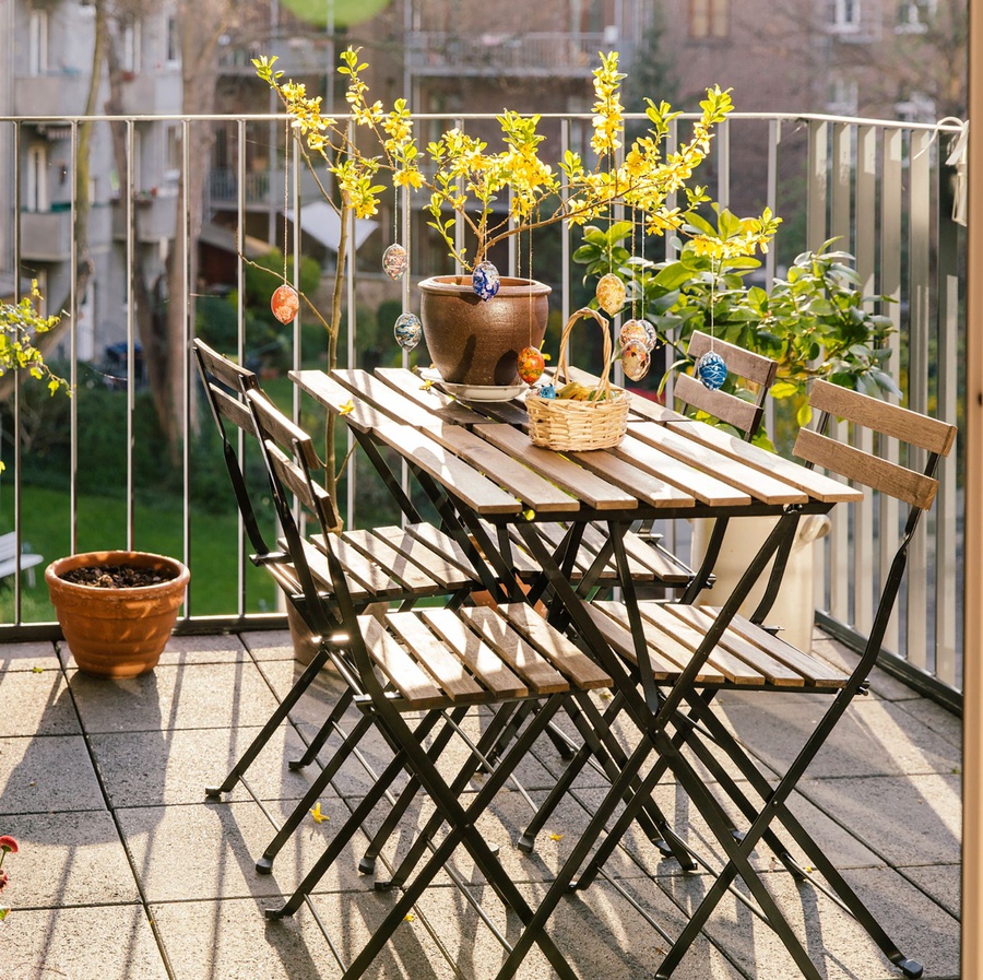 Thiết kế, trang trí ban công bằng những chậu cây nhỏ kết hợp bàn ghế xếp