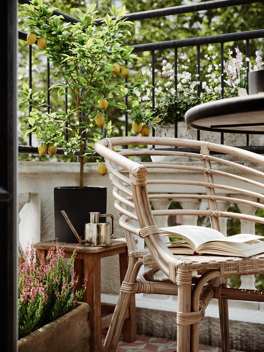 - Trang trí ban công bằng ghế tựa và cây kiểng