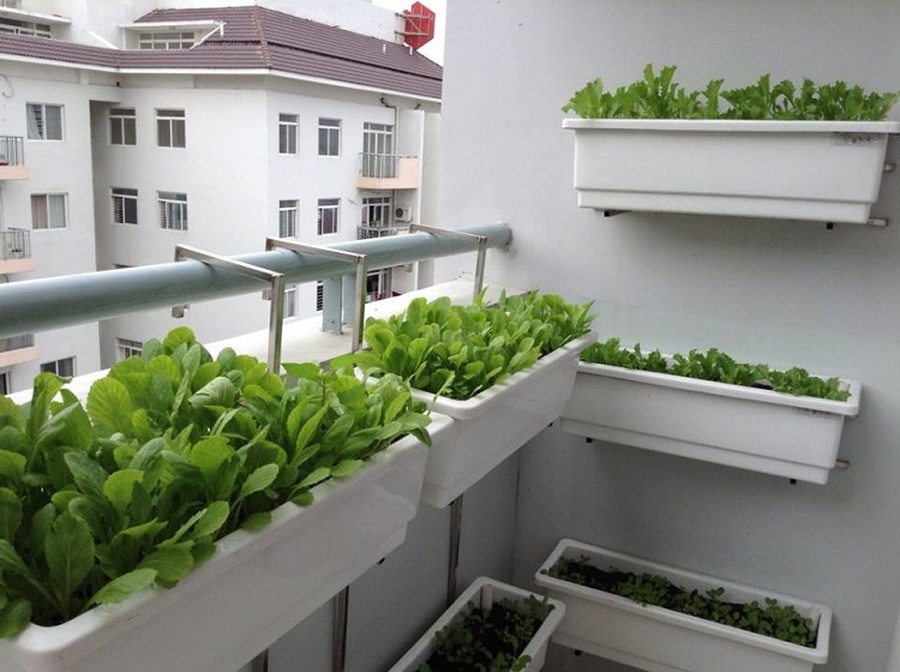 - Thiết kế ban công thành khu vực trồng rau sạch