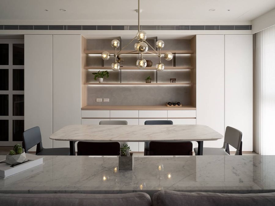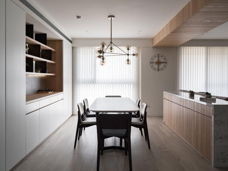 Bếp là nơi để bạn nấu ăn và luôn cần độ sạch sẽ và tươm tất nếu như vậy thị bữa ăn của gia đình sẽ thêm tròn vị. Thiết kế tủ bếp sát trần nhà vừa giúp cho nhiều hộc tủ chứa dụng cụ mà còn ngăn được bụi ở nóc tủ. Nếu diện tích nhà bạn rộng rãi thì bạn mua ngay chiếc bàn ăn có kích thước lớn để thuận lợi cho việc ngồi ăn và thoải mái. Còn nếu, nhà bạn có diện tích hạn hẹp thì bạn nên sử dụng bàn thông minh, chiếc bàn có thể giữ nguyên kích thước khi không cần nhưng sẽ mở rộng khi đông người.Ngoài ra có thể sử dụng thêm một số đồ nội thất để trang trí như đèn trần, tranh, cây cảnh cũng giúp phòng bếp thêm sinh động.