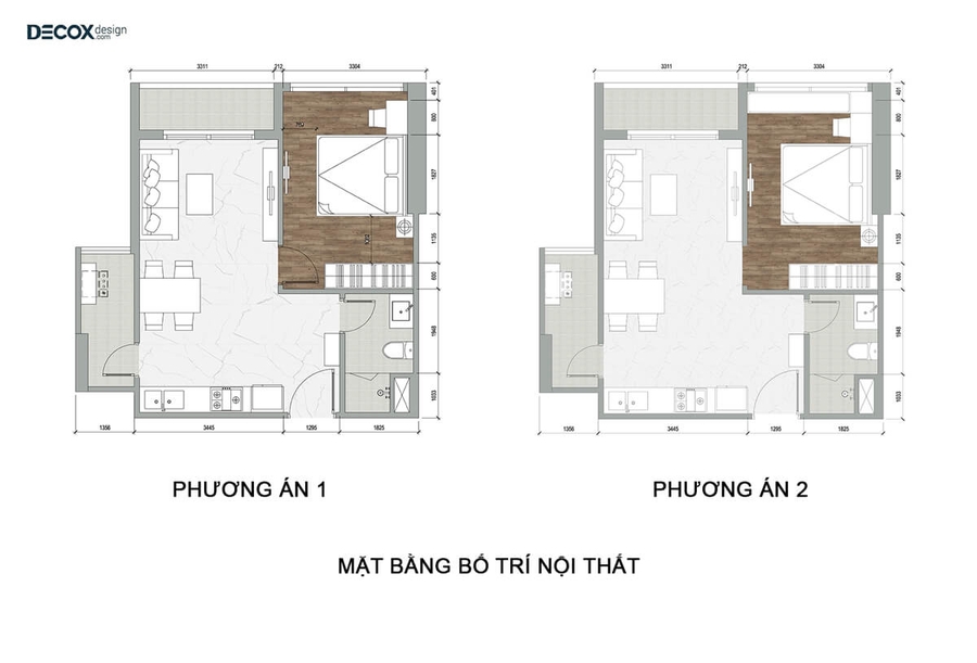 Decox Design đã đưa ra 2 phương án thiết kế để chị An lựa chọn và cũng làm tối ưu hóa diện tích. Đã tối ưu diện tích thì phương án 1 và phương án 2 chỉ khác về bố trí phòng ngủ.