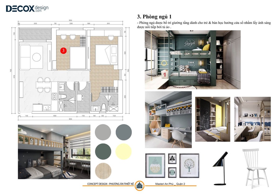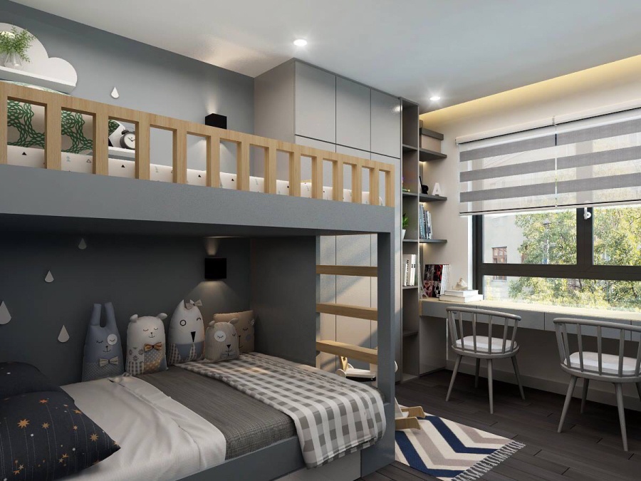 Decox đưa ra 3 mẫu thiết kế hiện đại dành riêng cho bé. Theo ý kiến của khách hàng thì 2 bé phải sử dụng chung một phòng ngủ vì thể phải sử dụng giường tầng nối liền với tủ là phương án hợp lý nhất. Có 3 màu, 3 phong cách giường cho bé tha hồ mà lựa chọn theo phong cách và sở thích của 2 bé.