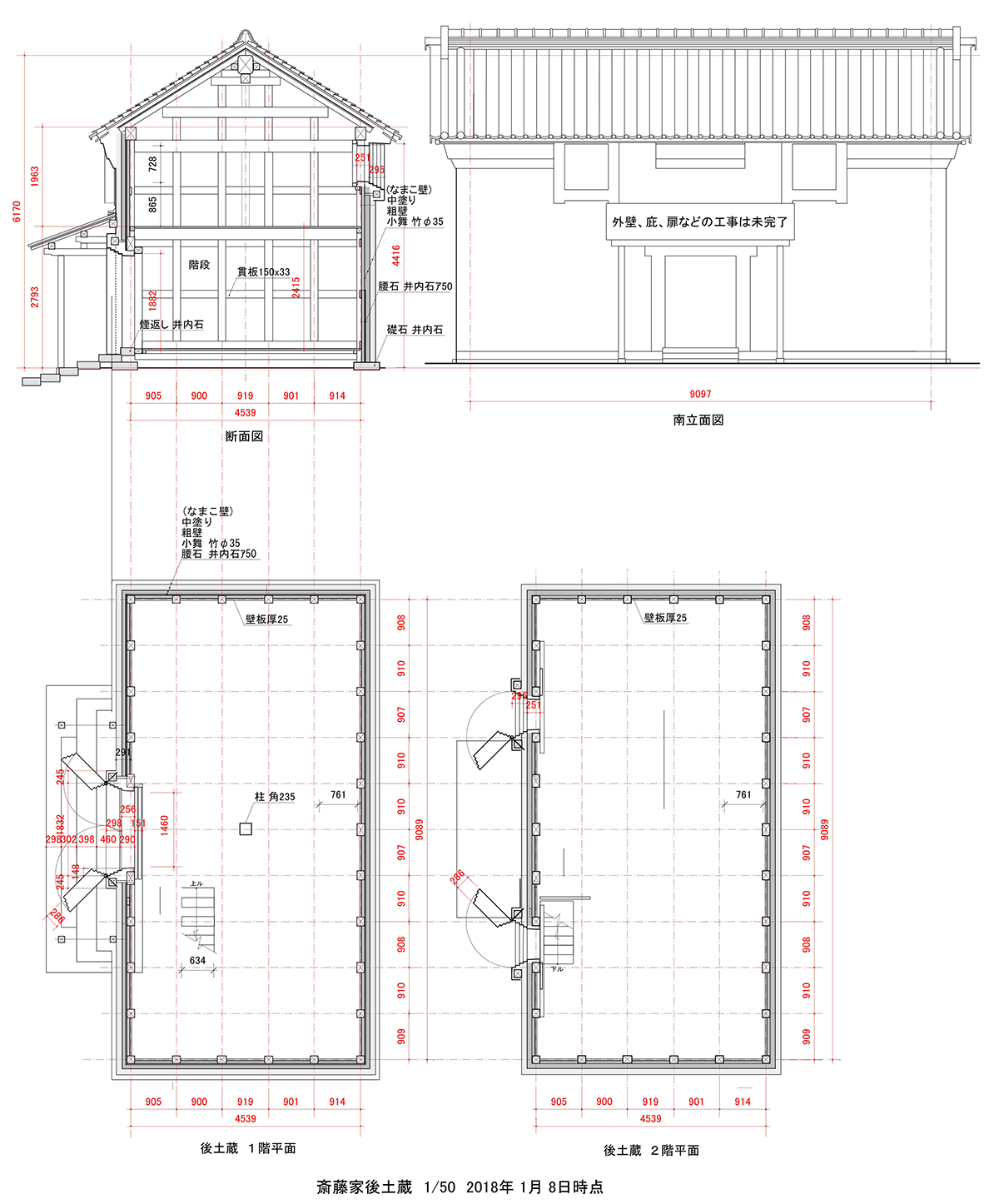 Mặt bằng mái: Bao gồm cách bố trí các lớp mái Nhật, vị trí xà gồ - vì kèo, chi tiết chống thấm và đường thoát nước. Phần này đặc biệt quan trọng vì mái Nhật có độ dốc thoải và nhiều lớp giao nhau.