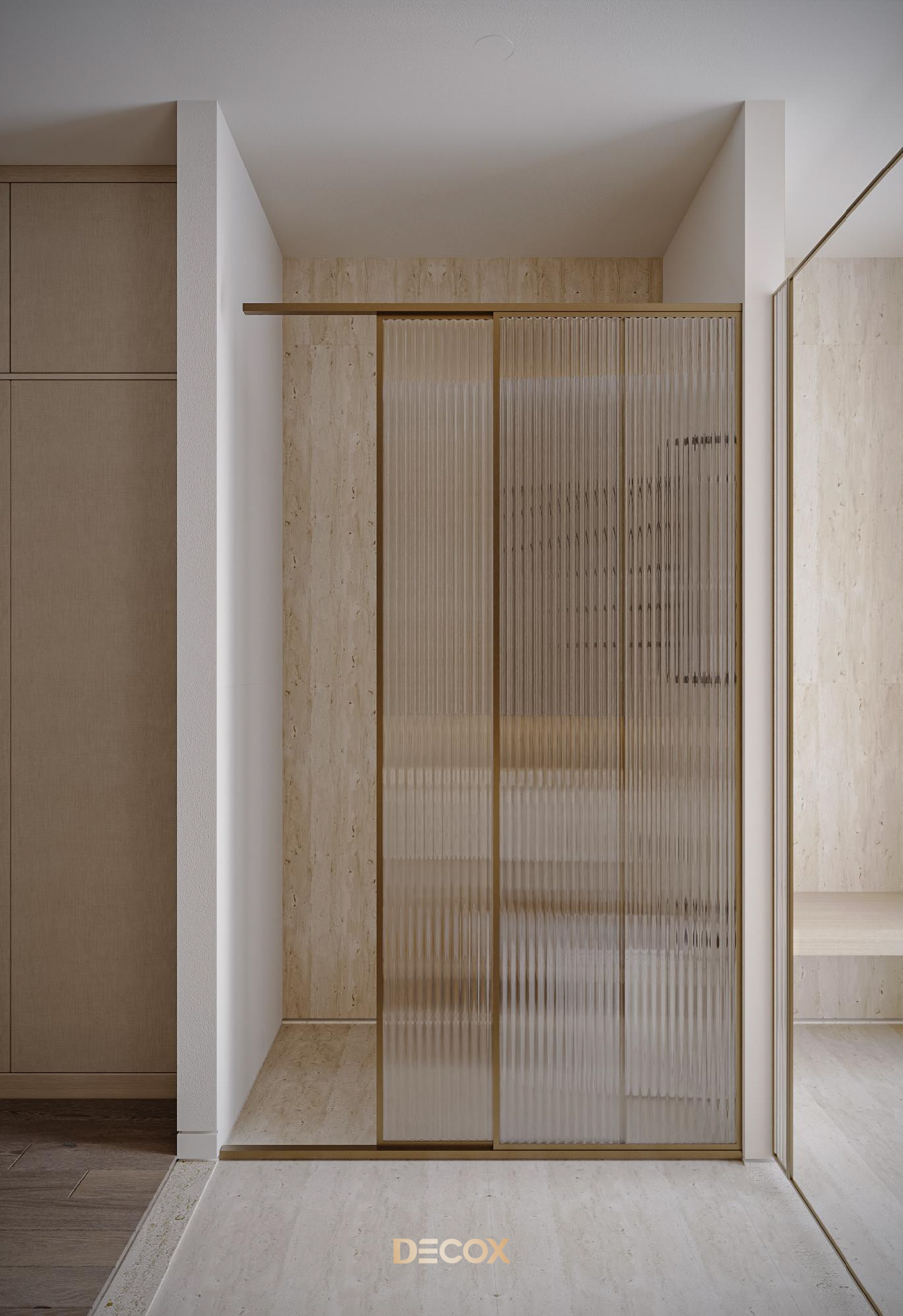 Sự kết hợp đá nhân tạo, gỗ, và kính cường lực màu trà trong công trình này tạo nên ngôn ngữ Modern Elegance: tinh tế, bền vững và dễ bảo trì.