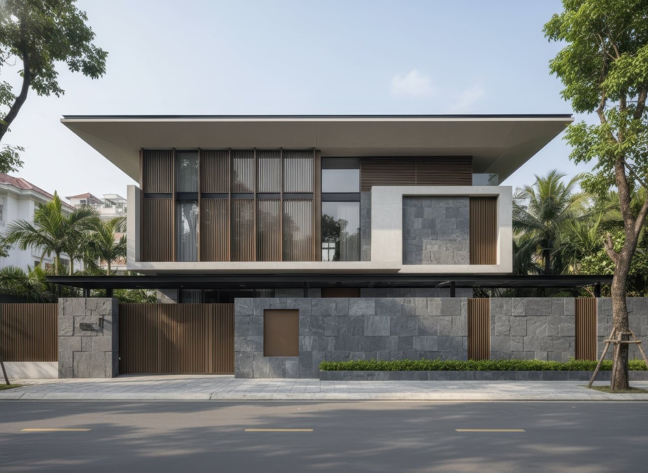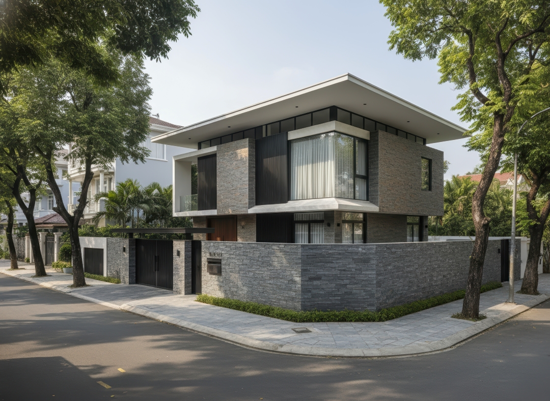 Phá vỡ quy tắc đối xứng truyền thống, mái lệch là bản tuyên ngôn đầy cá tính của kiến trúc hiện đại. Những khối mái vát chéo, cắt xẻ mạnh mẽ tạo nên hiệu ứng thị giác ấn tượng, giúp công trình hiện diện như một tác phẩm điêu khắc giữa không gian.