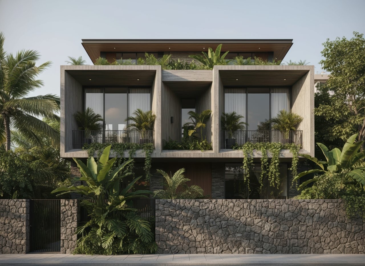 Những vật liệu bản địa giàu cảm xúc như gạch nung, đá tự nhiên hay gỗ được ứng dụng khéo léo, không chỉ tối ưu chi phí mà còn góp phần gìn giữ vẻ đẹp mộc mạc, bình dị đặc trưng của miền quê. Song hành cùng đó là các khoảng ban công rộng thoáng, trở thành nơi lý tưởng để các thành viên quây quần, thư giãn và đón nhận trọn vẹn nguồn năng lượng tươi mới lan tỏa khắp không gian sống.