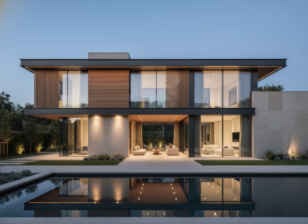Thiết kế chữ L là giải pháp thông minh để tạo ra một "khoảng thở" riêng tư ngay trong lòng công trình. Hai cánh nhà vuông góc mở ra thế "ôm trọn" lấy khoảng sân vườn hoặc hồ bơi bên trong, giúp ngăn cách tiếng ồn và hạn chế tầm nhìn từ bên ngoài. Nhờ bố cục trải rộng này, mọi không gian chức năng từ phòng khách, bếp đến gara, phòng làm việc đều sở hữu "view" nhìn ra thiên nhiên, đồng thời đón được trọn vẹn gió trời và ánh sáng tự nhiên từ nhiều hướng.