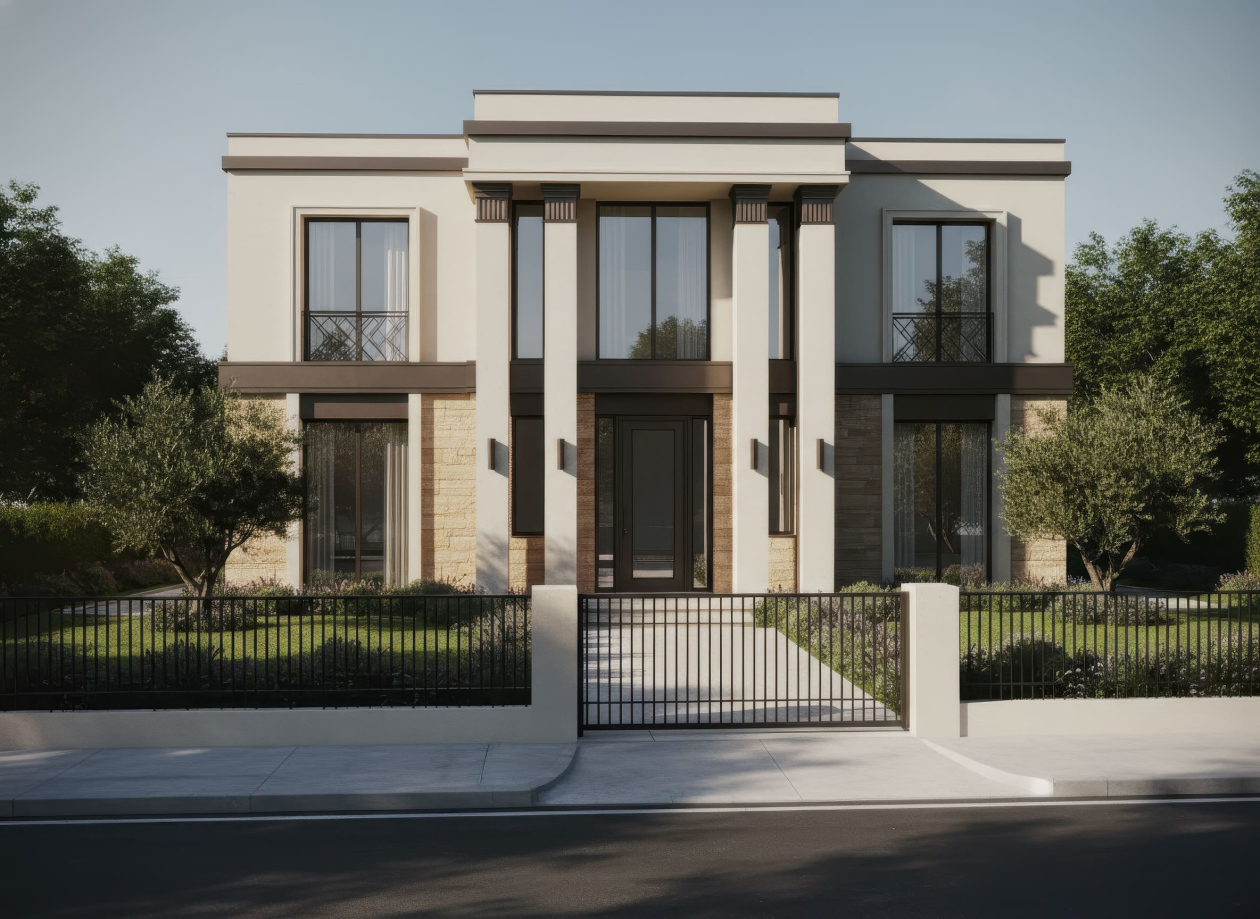 Biệt thự Tân cổ điển nổi bật với những đặc trưng dễ nhận diện, mang đến vẻ đẹp hài hòa và tinh tế: