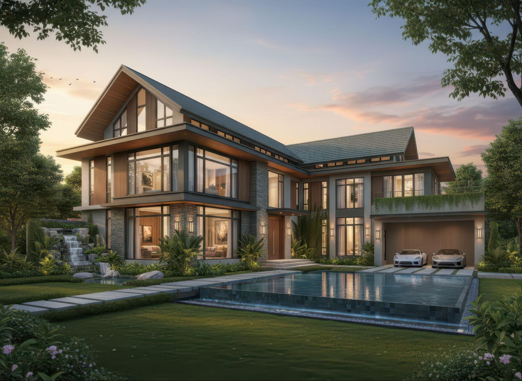 Ngôi nhà vườn mái Thái hiện đại theo phong cách thiền ở Thái Lan có hồ bơi