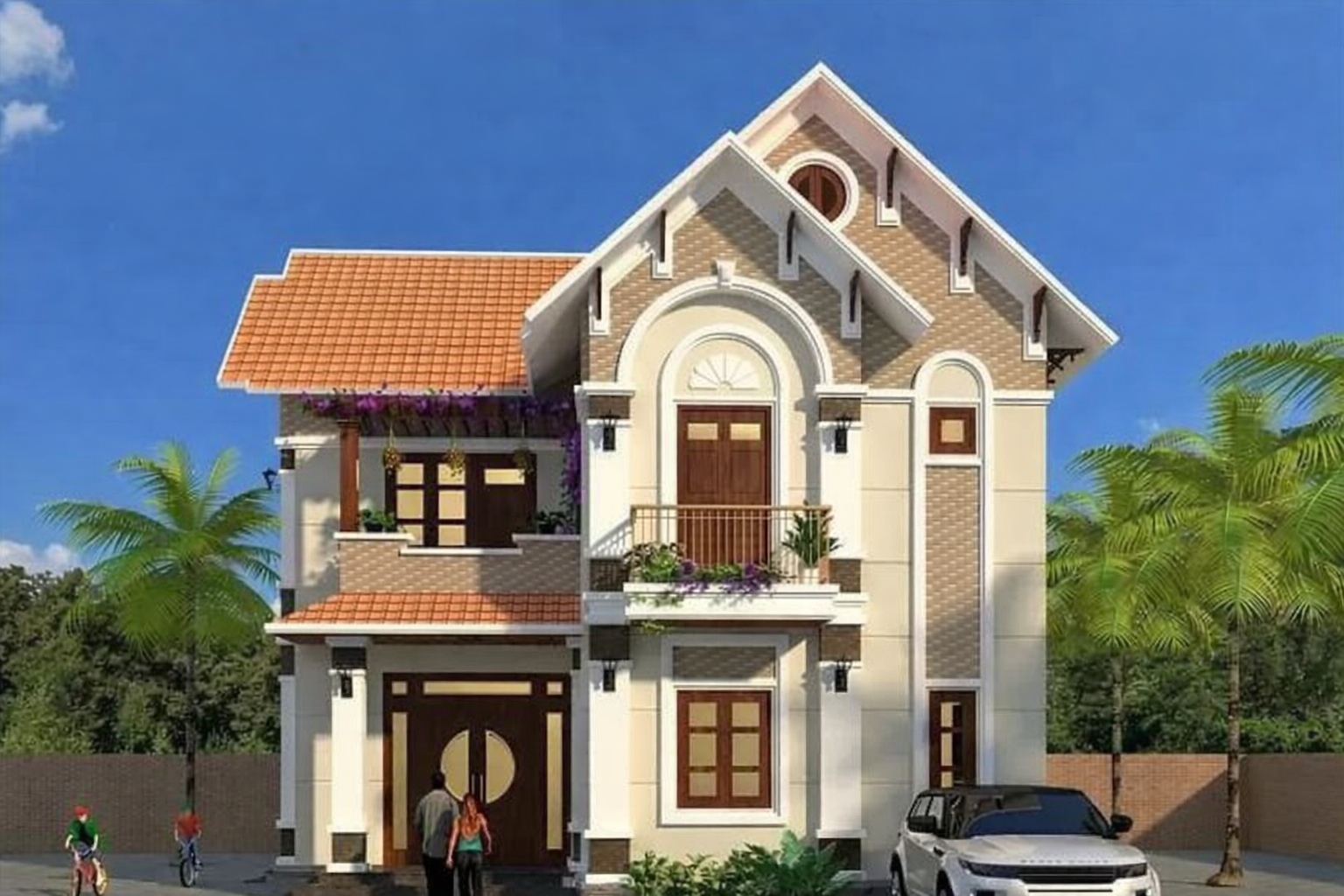 Nhà 2 tầng mái Thái với độ dốc lớn và hình khối rõ ràng là giải pháp kiến trúc được nhiều gia chủ lựa chọn nhờ khả năng chống nóng và thoát nước hiệu quả, đặc biệt phù hợp với điều kiện khí hậu nóng ẩm, mưa nhiều. Cấu trúc mái cao giúp hạn chế hấp thụ nhiệt trực tiếp vào không gian bên trong, đồng thời giảm nguy cơ thấm dột trong quá trình sử dụng lâu dài. Đặc biệt, với các mẫu nhà phố có mặt tiền hẹp (khoảng 5m), mái Thái giúp xóa bỏ cảm giác tù túng, trong khi với mặt tiền rộng 8m, nó lại tôn lên sự bề thế và sang trọng.