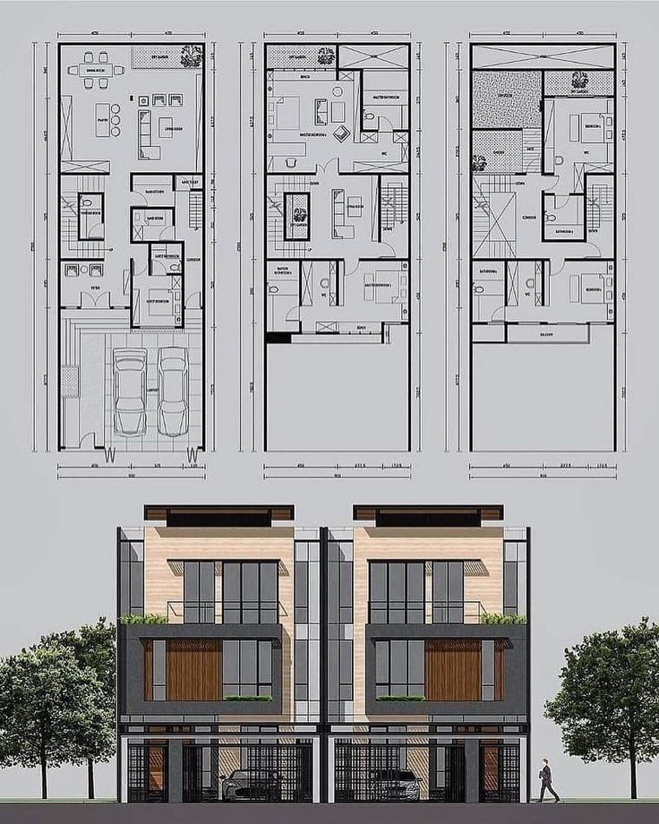 42+ Mẫu thiết kế nhà ống 3 tầng bản vẽ hiện đại, mặt tiền đẹp