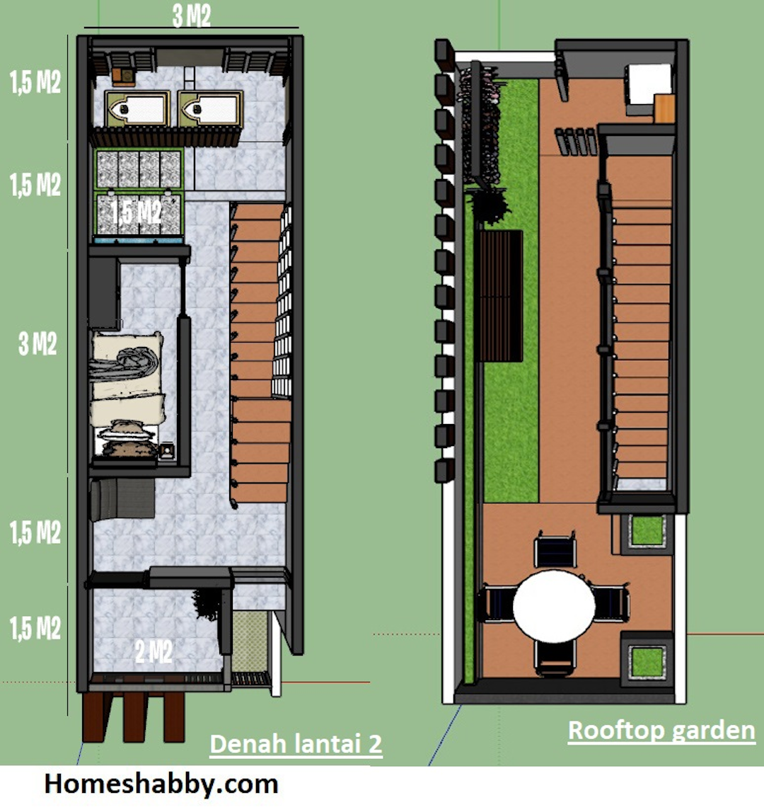 25 Mẫu nhà ống 2 tầng 2 mặt tiền đẹp, đơn giản (bản vẽ và hình 3D)