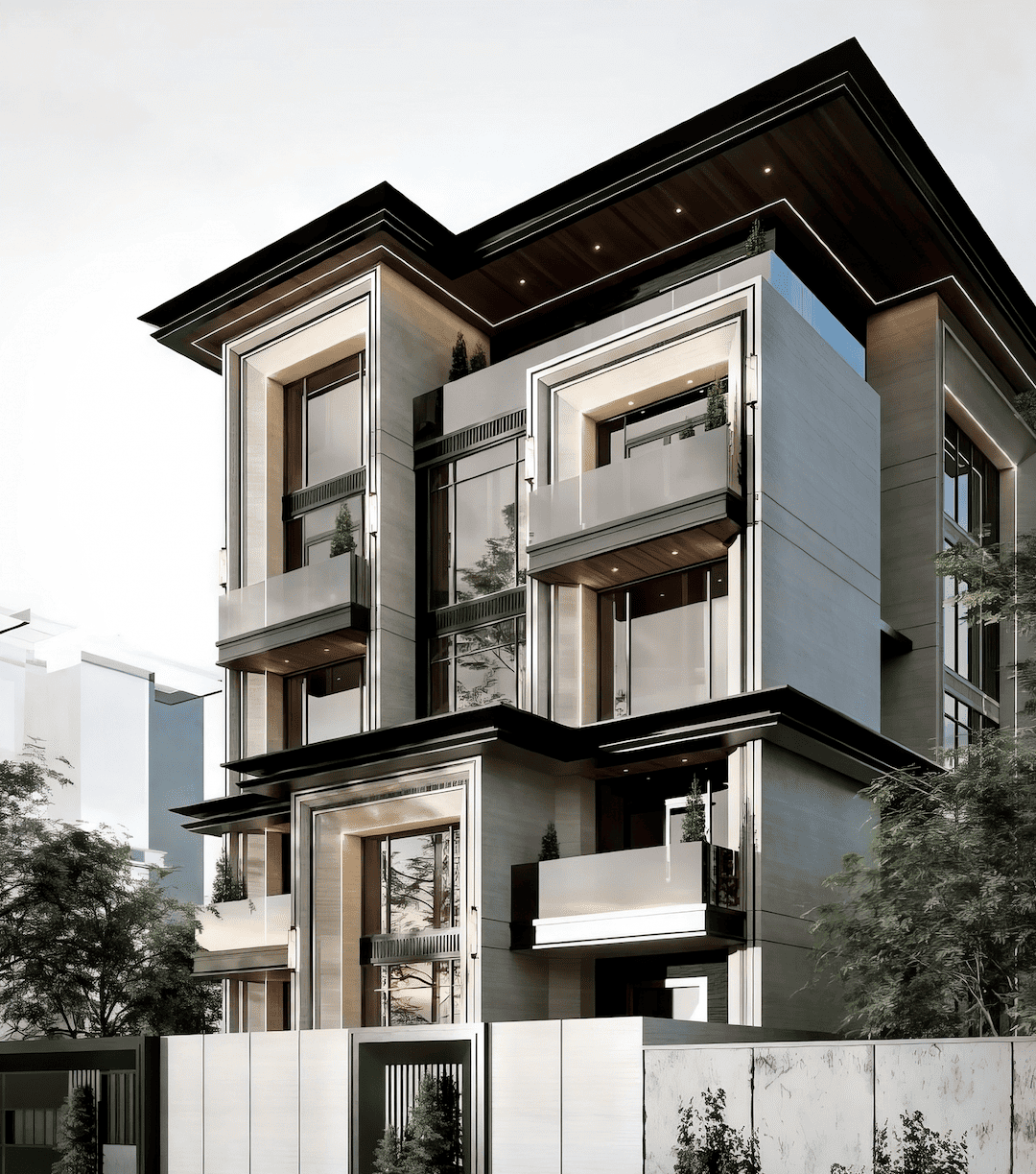 Nhà nhà ống 5 tầng phát triển mạnh theo chiều cao, việc tích hợp thang máy đóng vai trò là 'trục xương sống' định hình đẳng cấp và giá trị thương mại cho toàn bộ công trình. Quy hoạch mặt đứng căn nhà 5 tầng ưu tiên phong cách Hiện đại cao cấp hoặc Luxury, với sự phân tầng chức năng khoa học – từ khu vực kinh doanh, gara tại tầng thấp đến các không gian sinh hoạt biệt lập ở tầng cao – giúp ngôi nhà trở thành một tổ hợp sống đa năng, hiện đại và vô cùng bề thế. Đồng thời, để triệt tiêu sự bí bách công trình cao và sâu, giải pháp vi khí hậu như giếng trời và khoảng thông tầng được bố trí song hành cùng trục thang máy, tạo nên 'luồng dẫn sáng' tự nhiên xuyên suốt từ mái xuống tầng trệt.