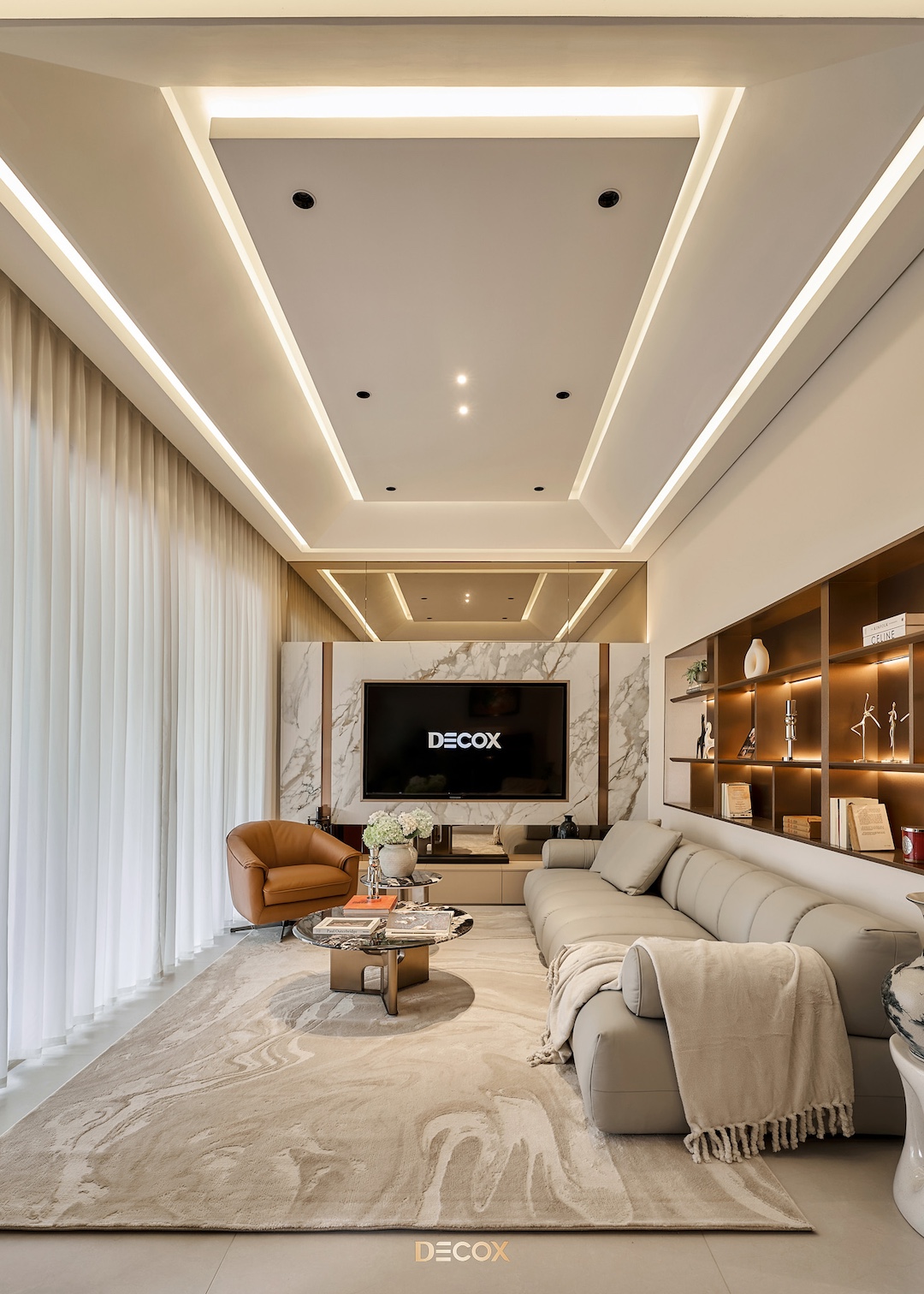 Tư duy quy hoạch 'phân tầng chức năng' rõ rệt: từ không gian kinh doanh hay gara bề thế tại tầng 1, kết hợp chiến lược 'khoảng thở đắt giá’ hệ thống giếng trời - các khoảng thông tầng đến các khu vực sinh hoạt chung và nghỉ ngơi được đẩy lên các tầng cao để đảm bảo sự yên tĩnh. Thiết kế nội thất thông minh, tận dụng tối đa chiều cao tầng với hệ tủ kịch trần, kệ âm tường và nội thất đa năng và sự nhất quán trong phong cách hiện đại – tối giản cùng các gam màu trung tính như trắng, be, xám, tạo nên sự cân bằng hoàn hảo giữa tính riêng tư, sự tiện nghi và giá trị gắn kết bền vững cho không gian.