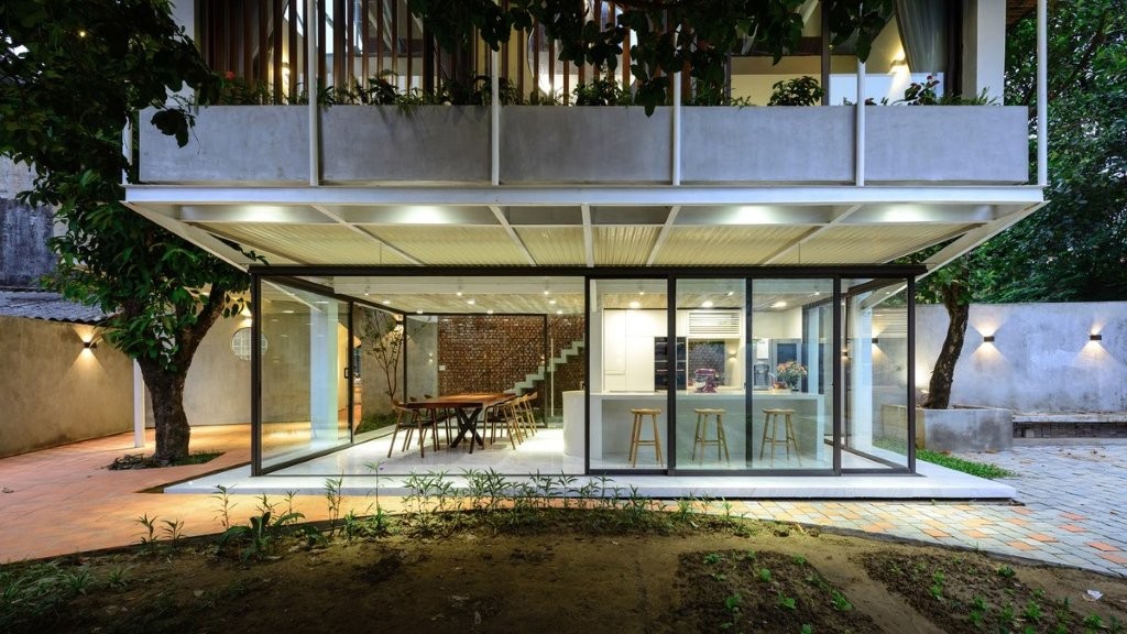 Trong nhà ống hiện đại, đặc biệt đối với các công trình nhà ống từ 2 đến 5 tầng, thiết kế sân sau nhà ống ưu tiên sử dụng các hệ mái hở hoặc bán hở độ dốc tối thiểu từ 10–15°, sử dụng kính cường lực, polycarbonate hoặc lam nhôm cao cấp. Giải pháp này dễ tháo lắp, giúp tận dụng nguồn sáng tự nhiên từ hai đầu nhà, ngăn chặn hiện tượng tích nhiệt, đảm bảo không gian bên trong luôn thoáng đãng, và thoát khỏi cảm giác 'ngộp' đặc trưng của đô thị.