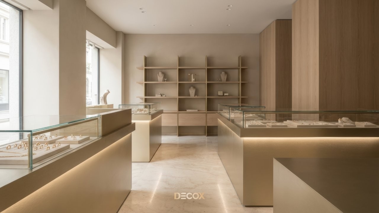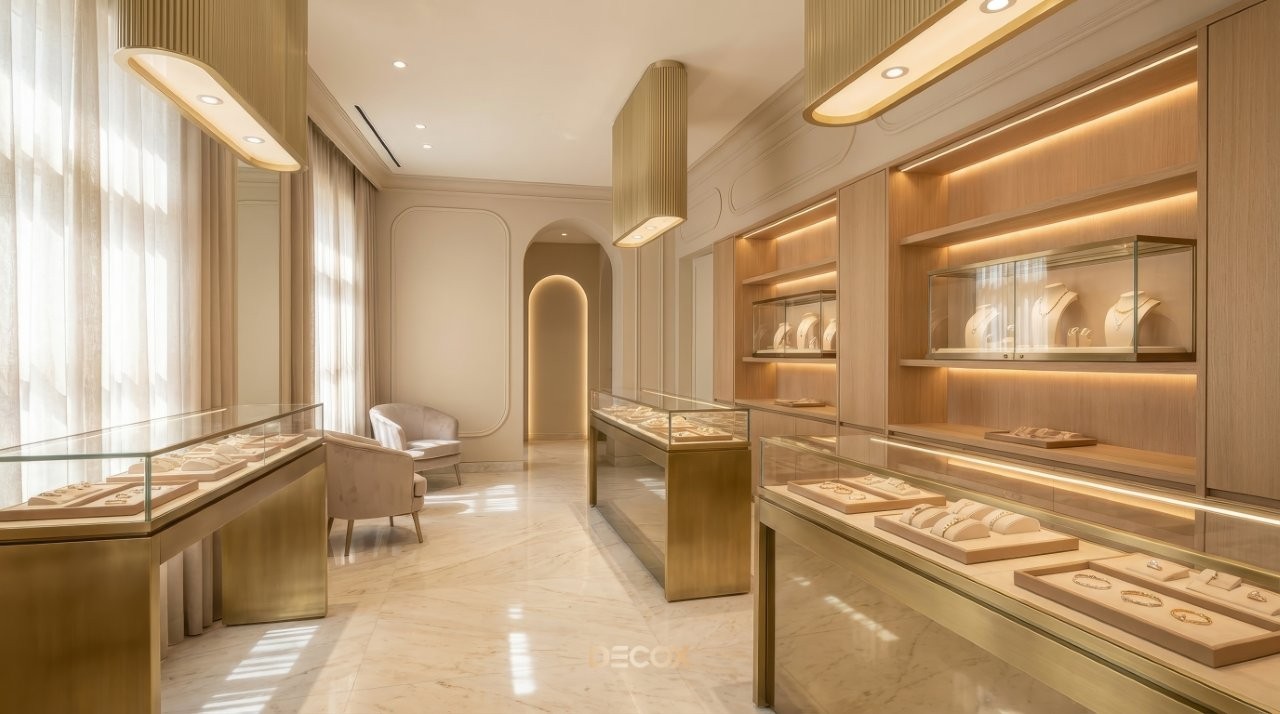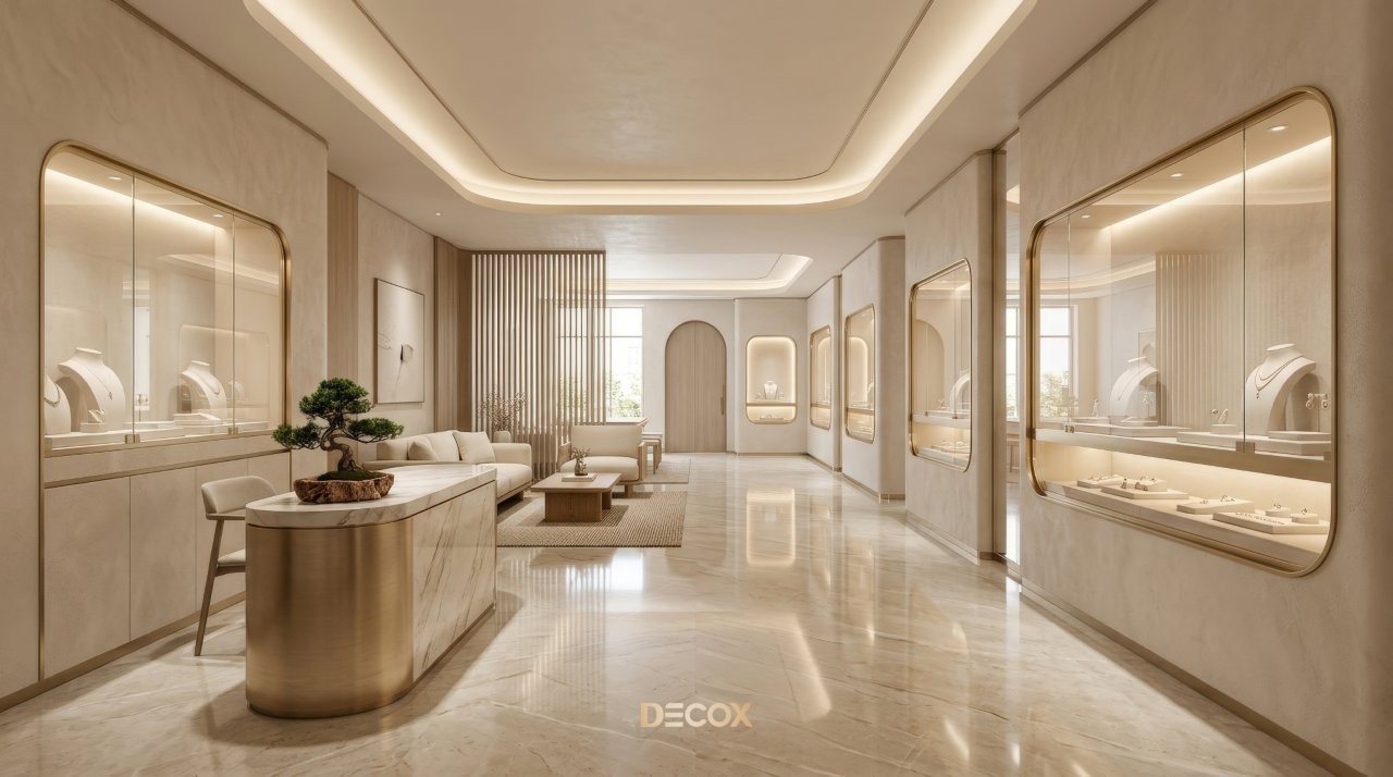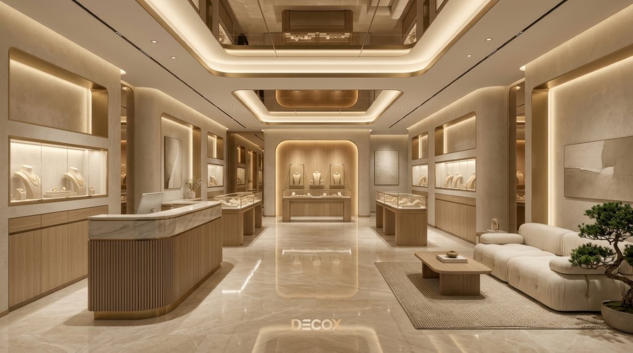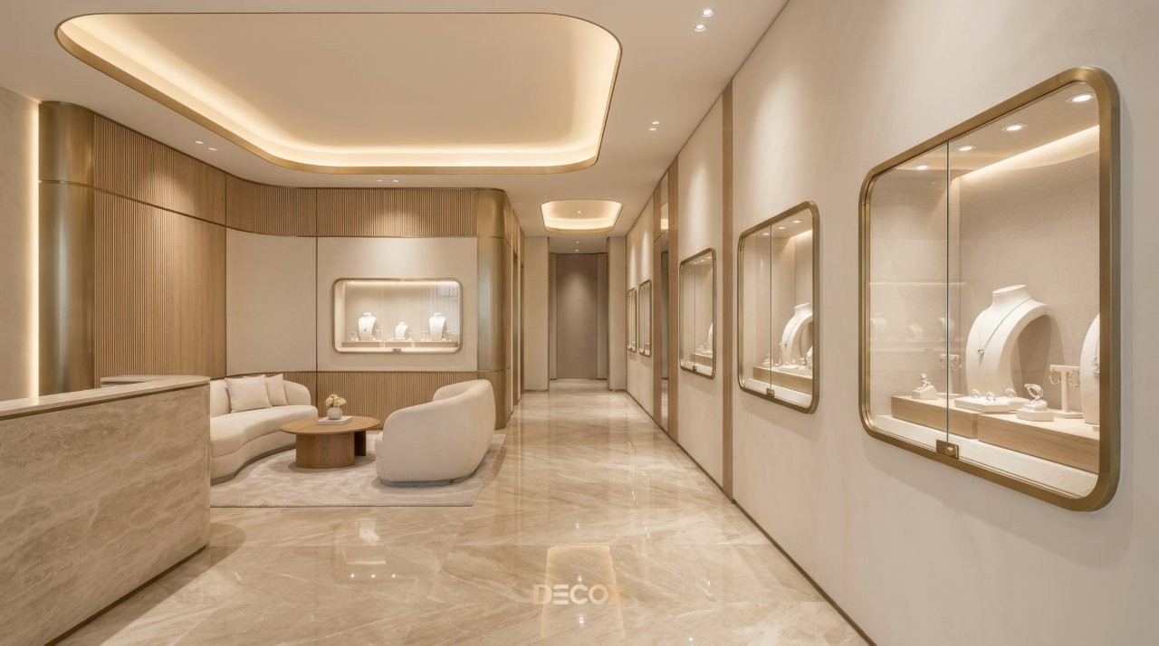 Thiết kế tiệm vàng chuyên nghiệp không chỉ dừng lại ở việc làm đẹp không gian, mà còn tư duy quy hoạch Layout 'không góc chết' và sự thăng hoa của vật liệu bắt sáng cao cấp. Tuy nhiên, làm sao để gia chủ có thể thấu hiểu tâm lý khách hàng để kết hợp giữa giải pháp kiến trúc an toàn và ngôn ngữ nội thất kim hoàn? Cùng Decox khai phá điểm khác biệt khi thiết kế tiệm vàng và ý tưởng thiết kế độc bản, biến mặt bằng kinh doanh của bạn thành một điểm đến của sự giàu sang, nơi mỗi chi tiết nhỏ nhất đều toát lên hơi thở của đẳng cấp và khẳng định giá trị bền vững trong thị trường kim hoàn đầy cạnh tranh. Xem ngay nhé!