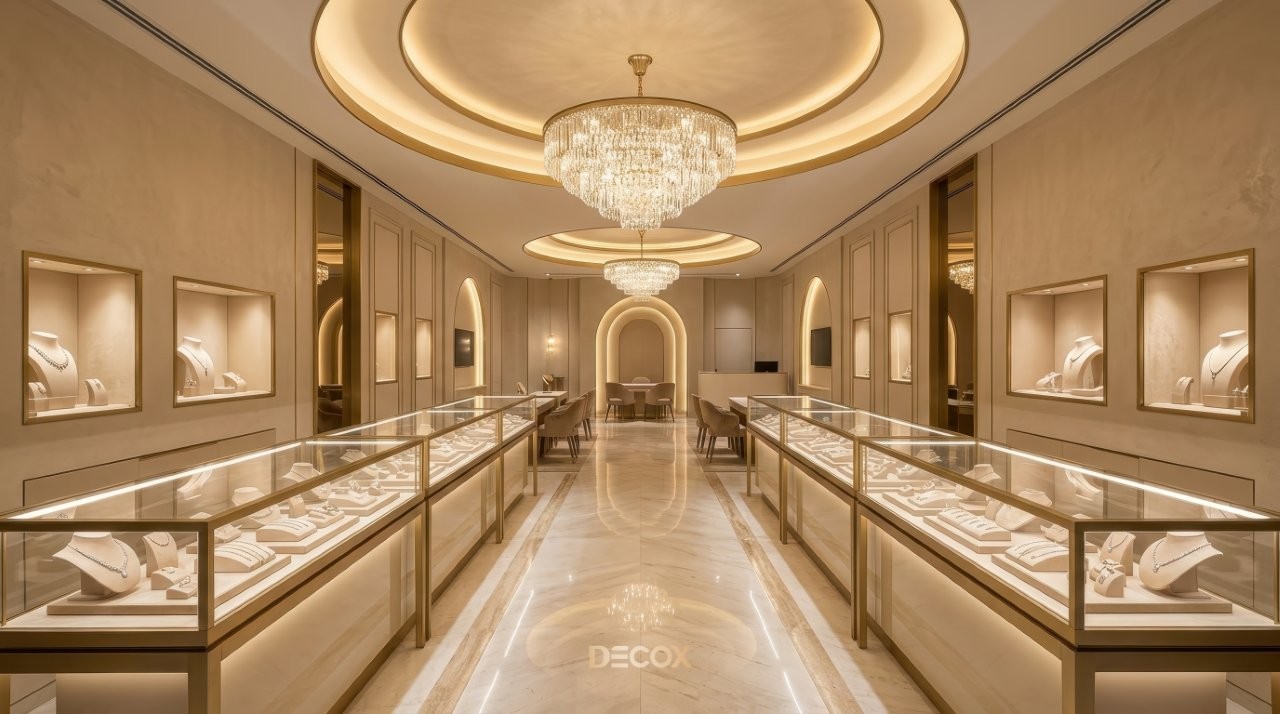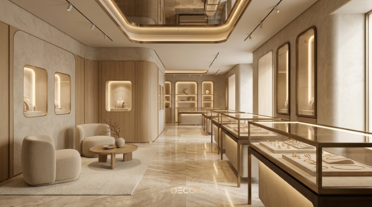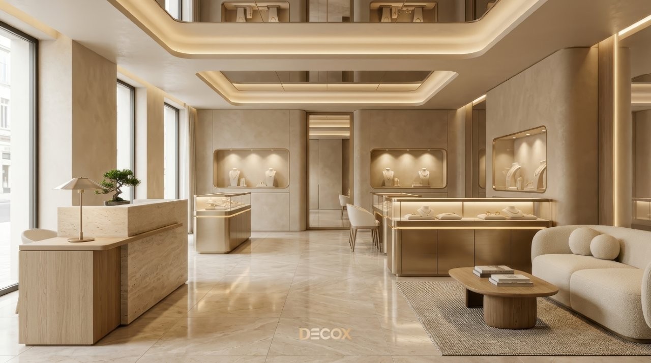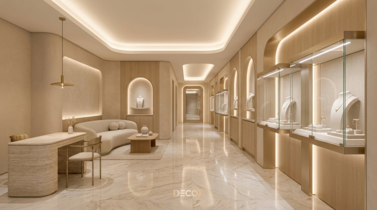 Thiết kế tiệm vàng chuyên nghiệp không chỉ dừng lại ở việc làm đẹp không gian, mà còn tư duy quy hoạch Layout 'không góc chết' và sự thăng hoa của vật liệu bắt sáng cao cấp. Tuy nhiên, làm sao để gia chủ có thể thấu hiểu tâm lý khách hàng để kết hợp giữa giải pháp kiến trúc an toàn và ngôn ngữ nội thất kim hoàn? Cùng Decox khai phá điểm khác biệt khi thiết kế tiệm vàng và ý tưởng thiết kế độc bản, biến mặt bằng kinh doanh của bạn thành một điểm đến của sự giàu sang, nơi mỗi chi tiết nhỏ nhất đều toát lên hơi thở của đẳng cấp và khẳng định giá trị bền vững trong thị trường kim hoàn đầy cạnh tranh. Xem ngay nhé!