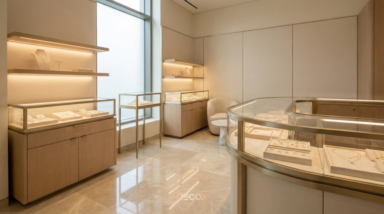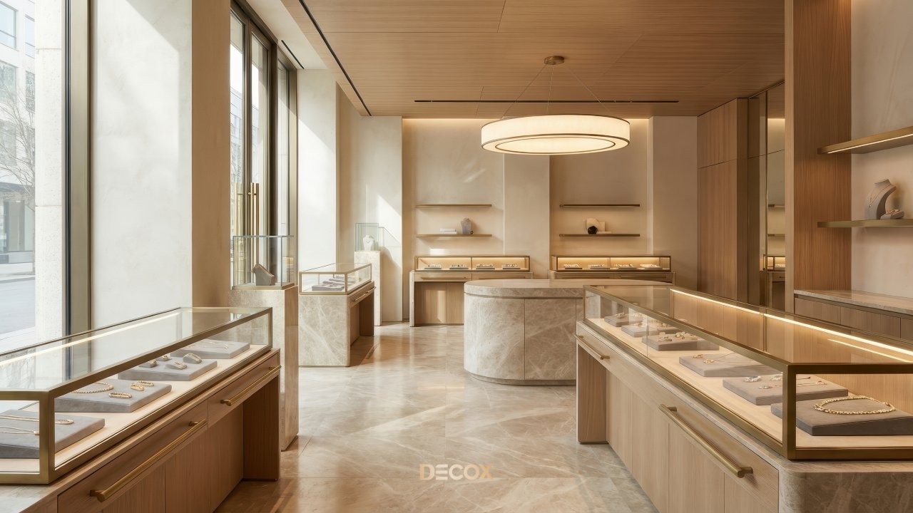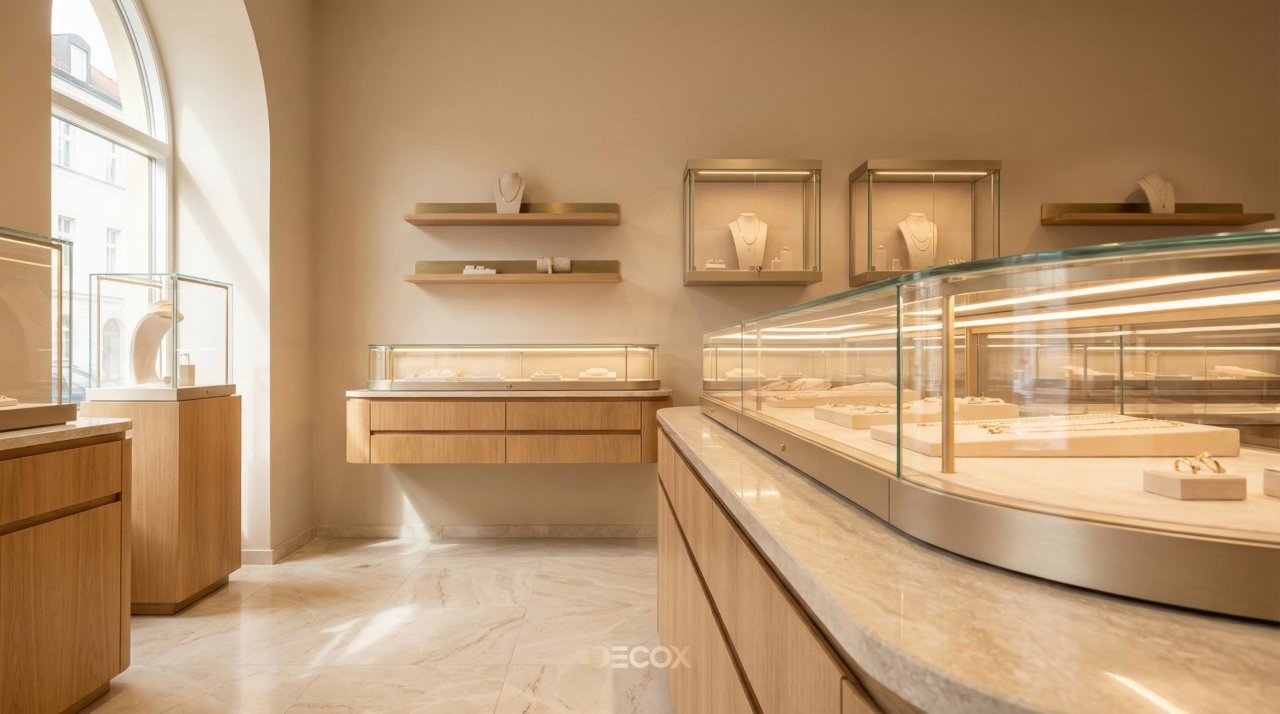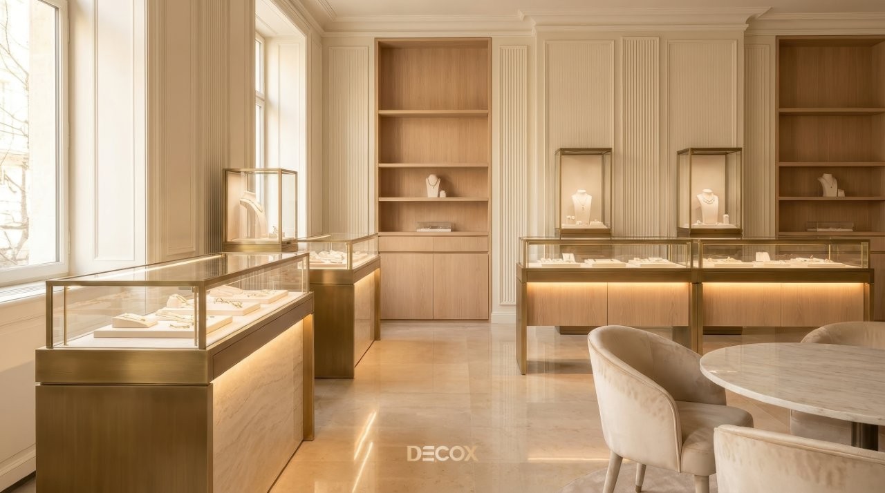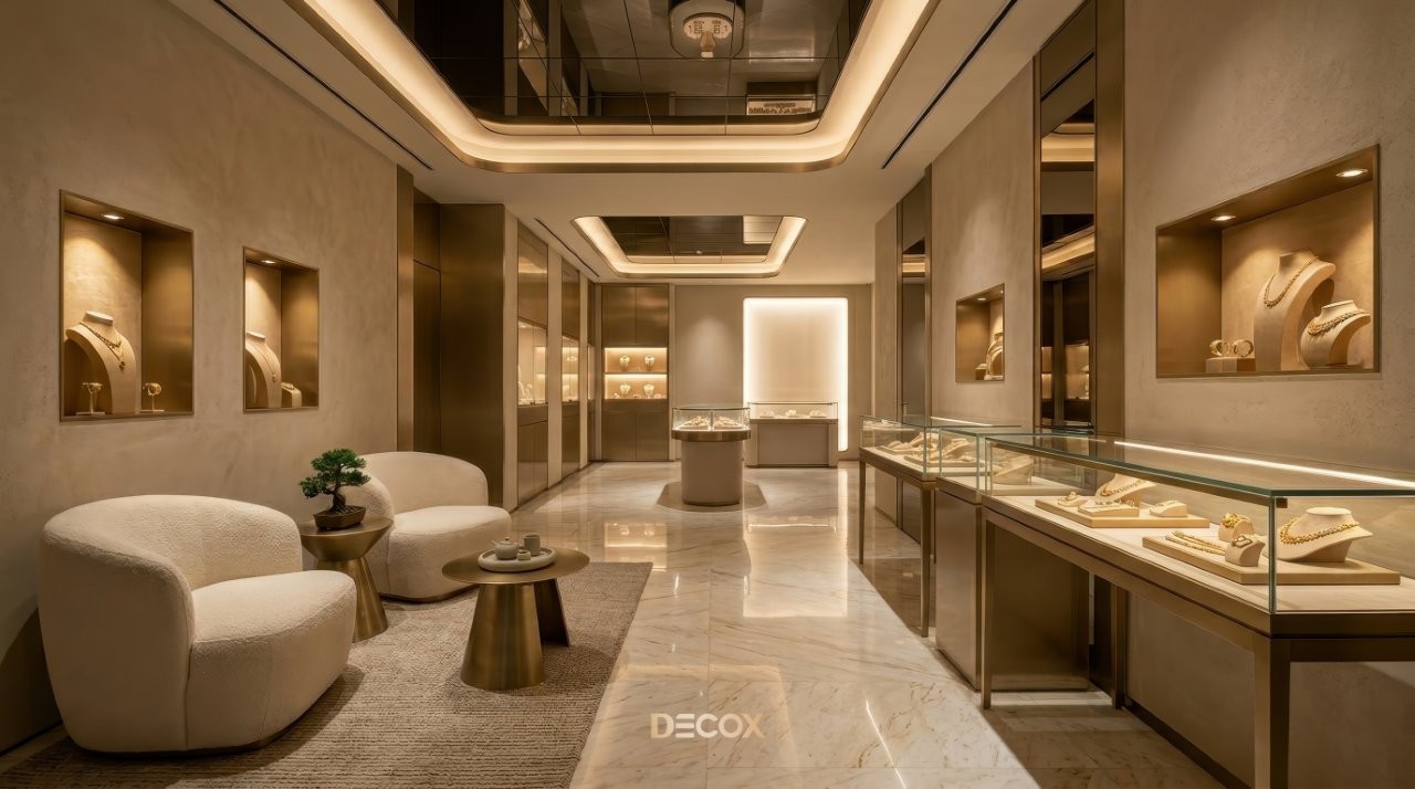 Thiết kế tiệm vàng chuyên nghiệp không chỉ dừng lại ở việc làm đẹp không gian, mà còn tư duy quy hoạch Layout 'không góc chết' và sự thăng hoa của vật liệu bắt sáng cao cấp. Tuy nhiên, làm sao để gia chủ có thể thấu hiểu tâm lý khách hàng để kết hợp giữa giải pháp kiến trúc an toàn và ngôn ngữ nội thất kim hoàn? Cùng Decox khai phá điểm khác biệt khi thiết kế tiệm vàng và ý tưởng thiết kế độc bản, biến mặt bằng kinh doanh của bạn thành một điểm đến của sự giàu sang, nơi mỗi chi tiết nhỏ nhất đều toát lên hơi thở của đẳng cấp và khẳng định giá trị bền vững trong thị trường kim hoàn đầy cạnh tranh. Xem ngay nhé!