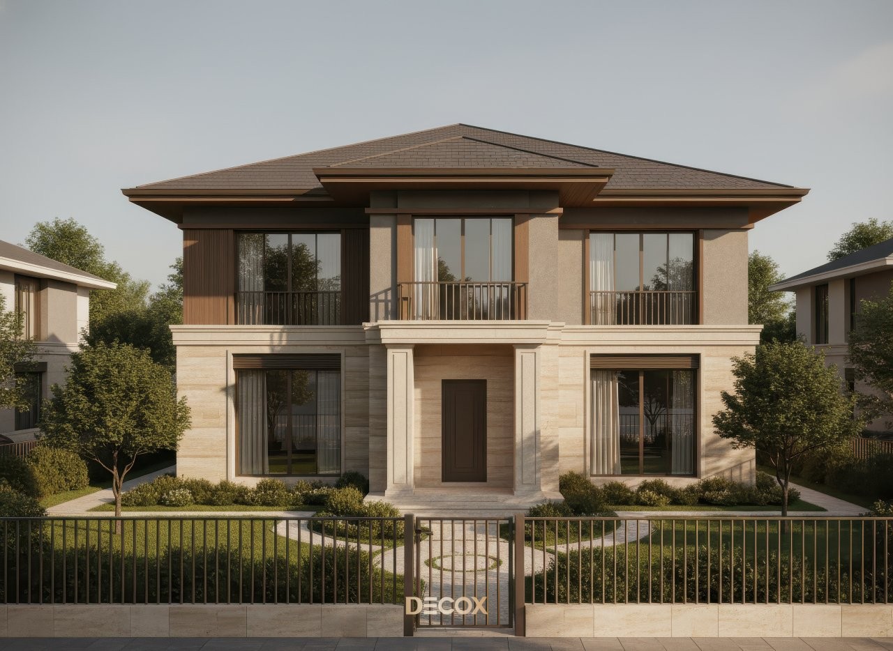 - Decox - Đơn vị thiết kế, thi công kiến trúc và nội thất nhà tân cổ điển 2 tầng