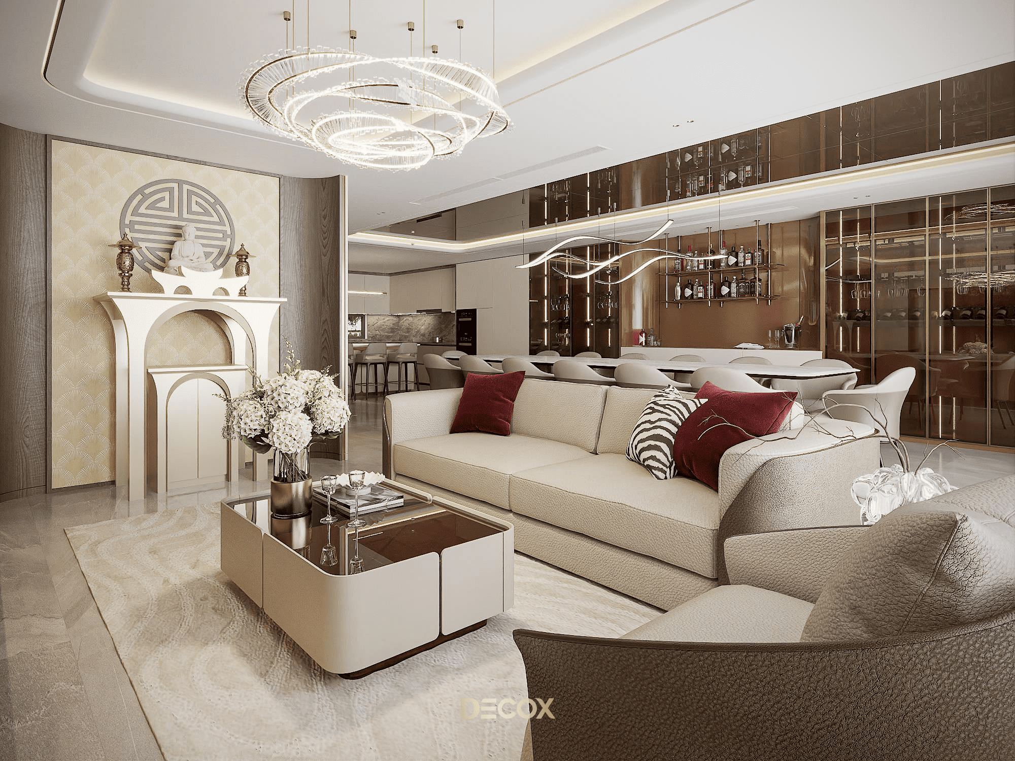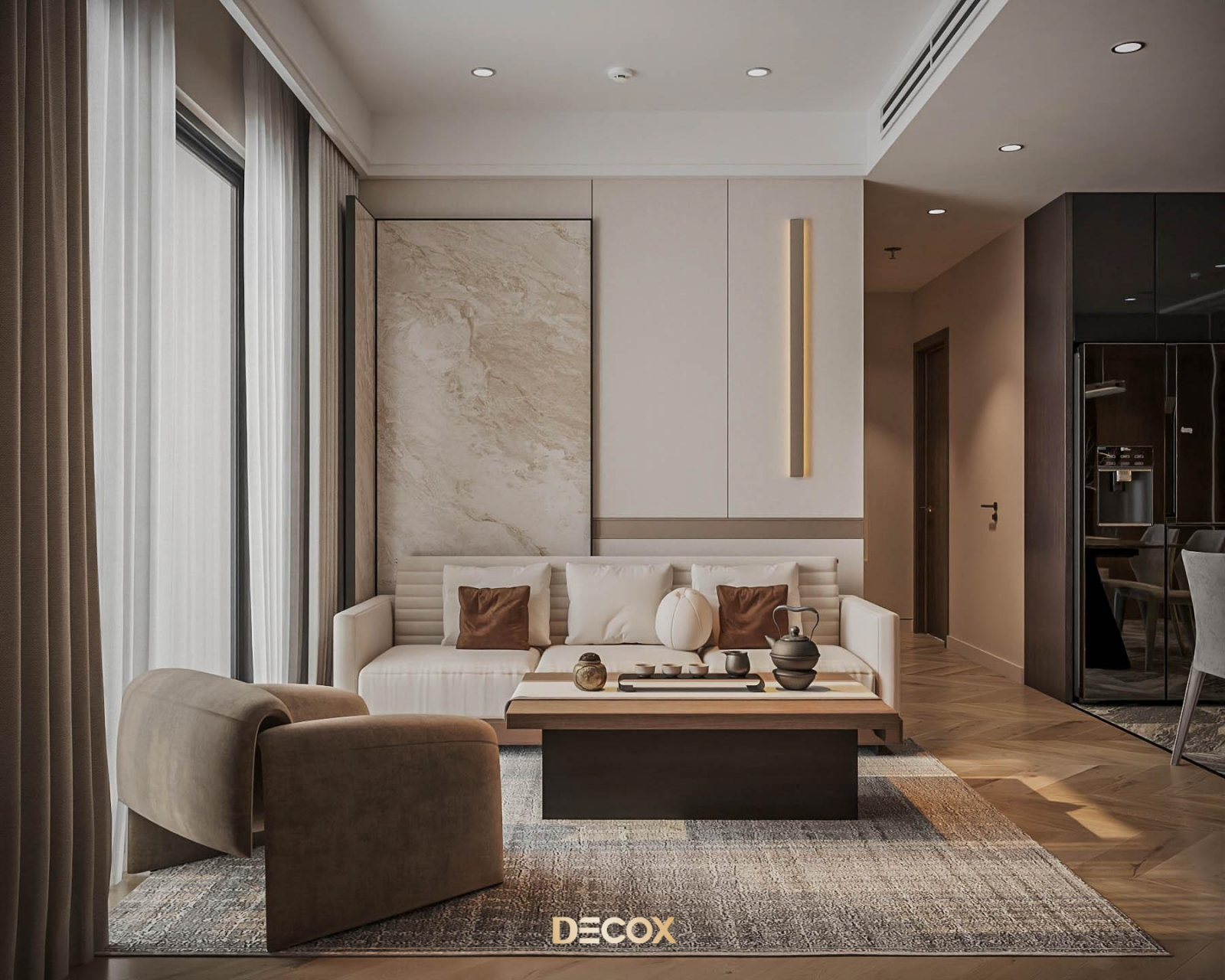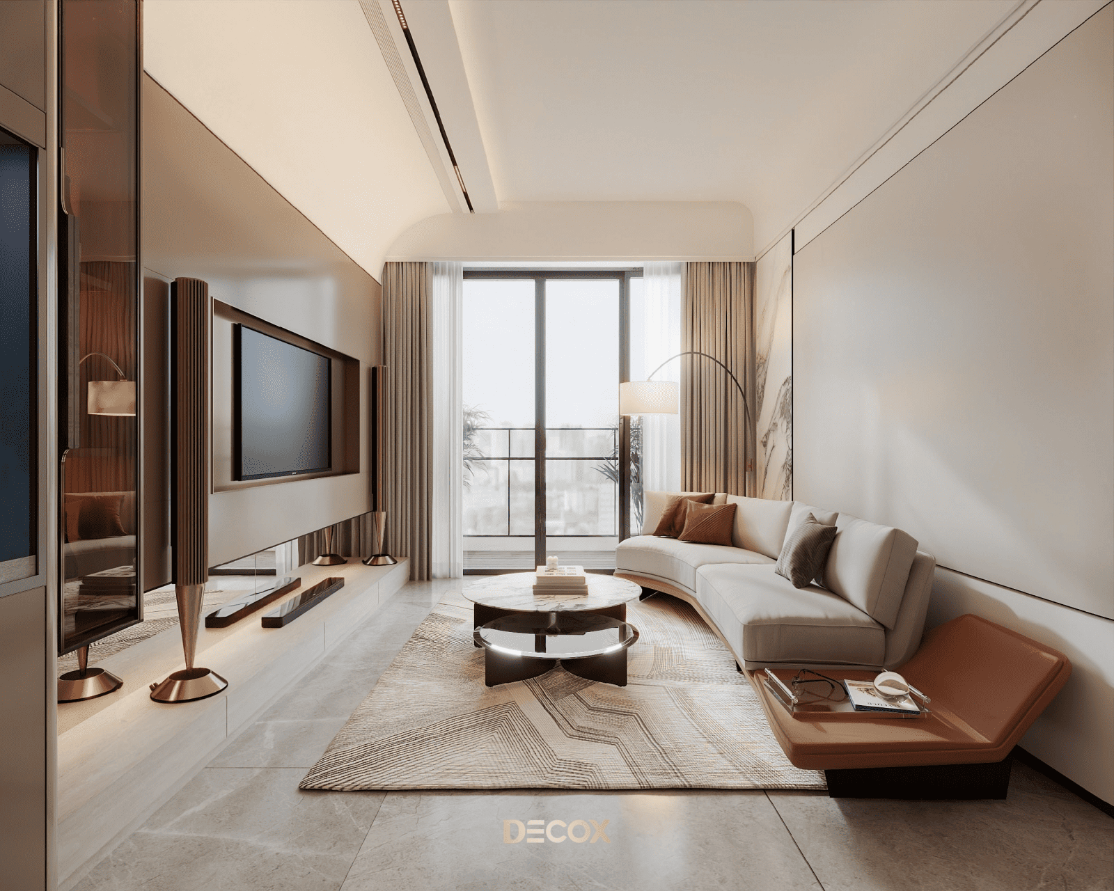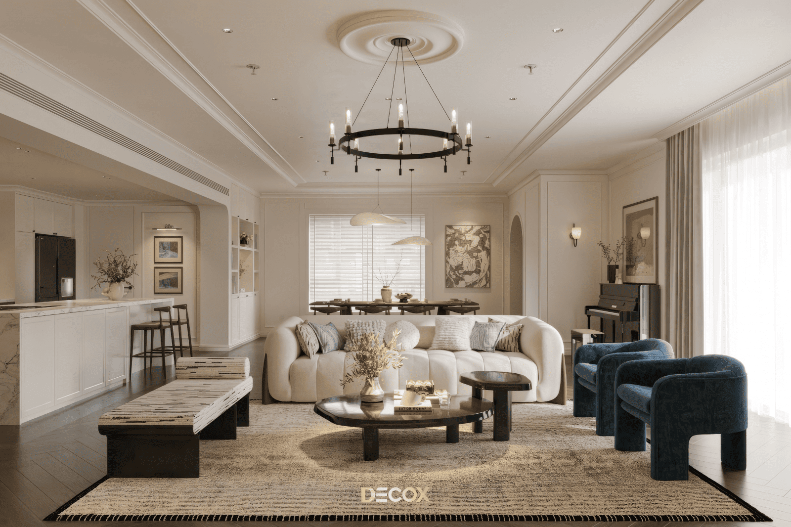 Decox tin rằng, một thiết kế phòng khách đẹp không nằm ở sự phô diễn hình thức, mà ở cách không gian được tổ chức để con người cảm thấy dễ chịu khi bước vào, bình yên khi ở lại và gắn bó theo thời gian. Hãy cùng đi sâu hơn vào các giải pháp không gian qua bộ sưu tập Thiết kế nội thất phòng khách hiện đại của Decox. Tại đây, gia chủ sẽ tìm thấy những không gian được kiến tạo để tôn vinh sự kết nối: Kết nối các thành viên bằng sự tiện nghi, kết nối con người với thiên nhiên bằng không gian mở, và kết nối cảm xúc bằng ngôn ngữ của ánh sáng.