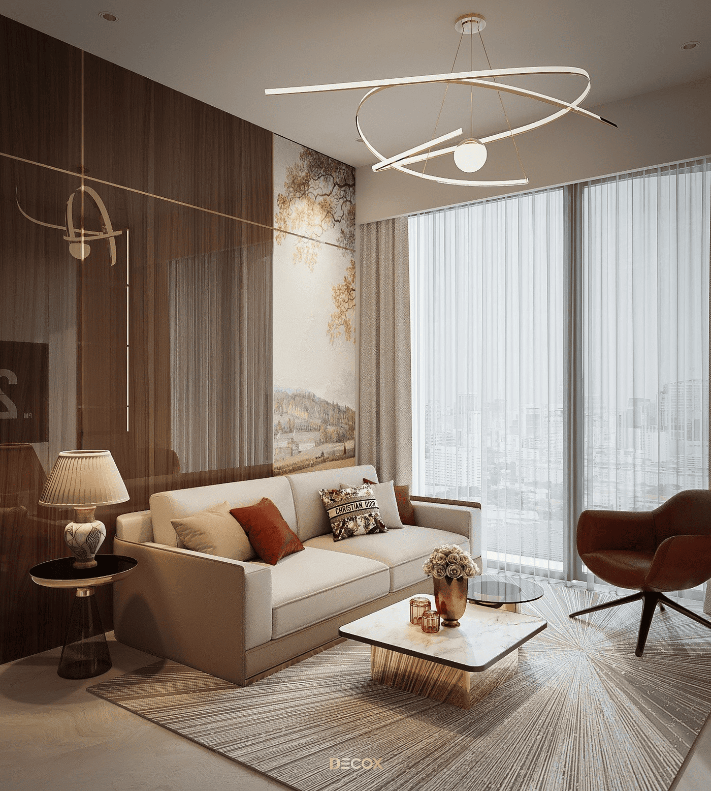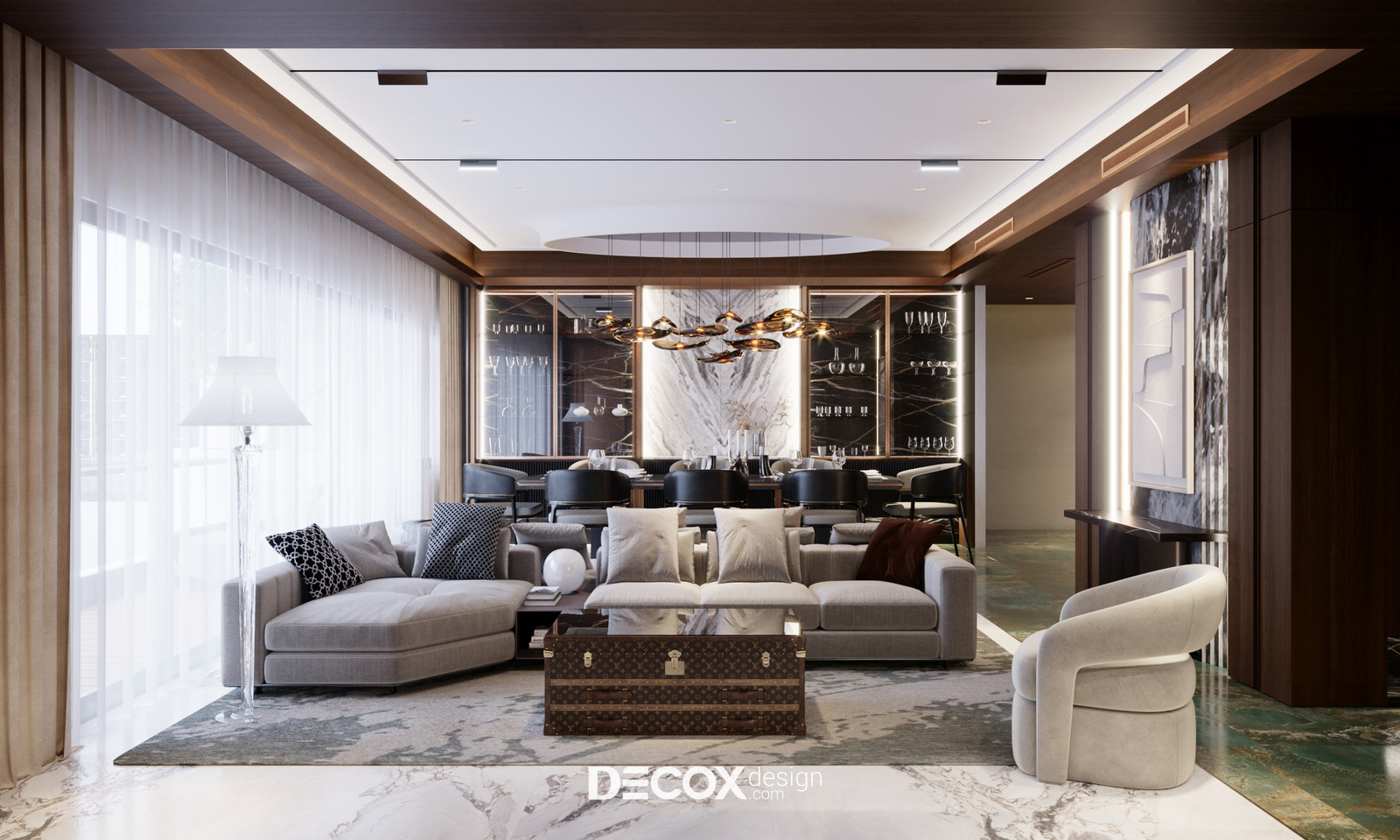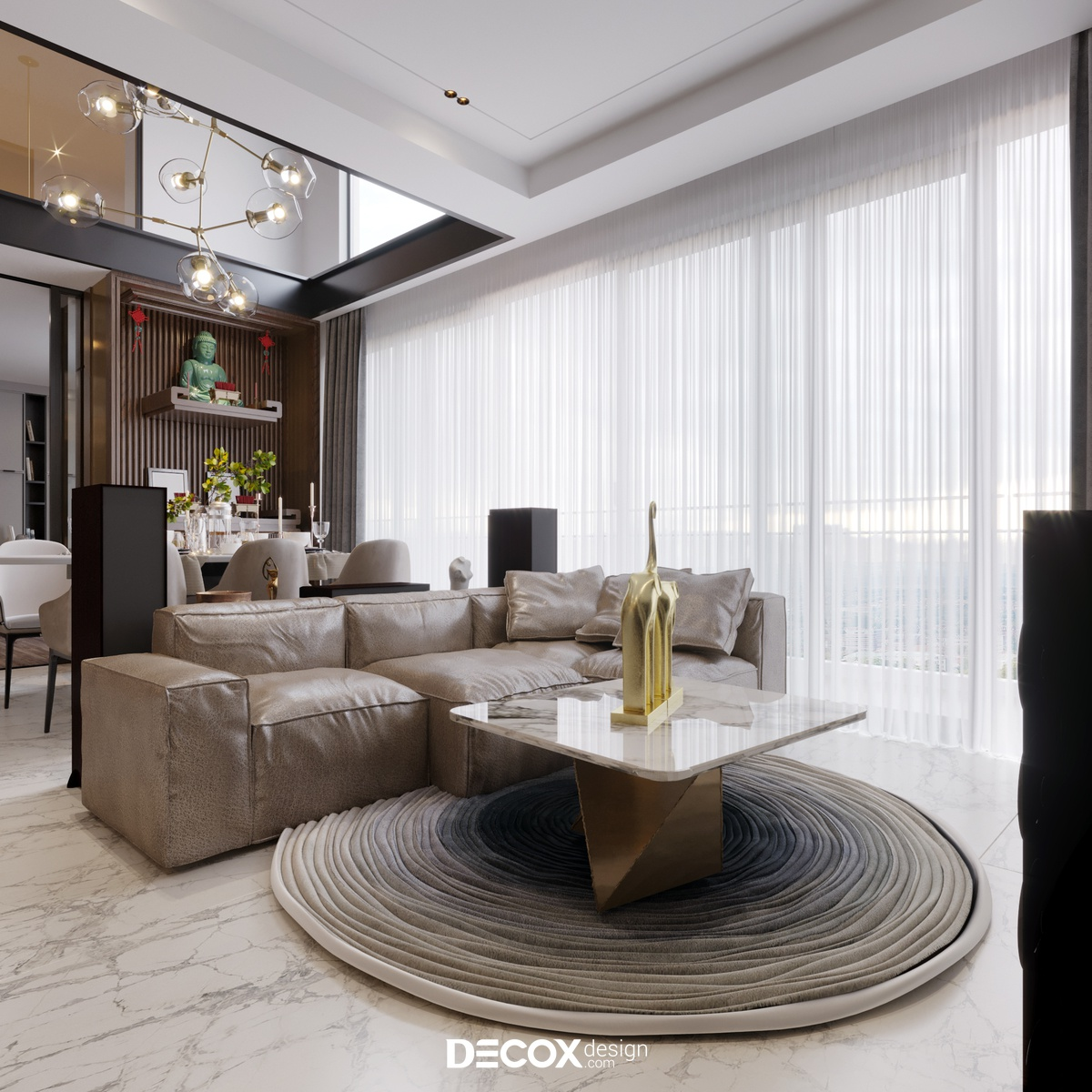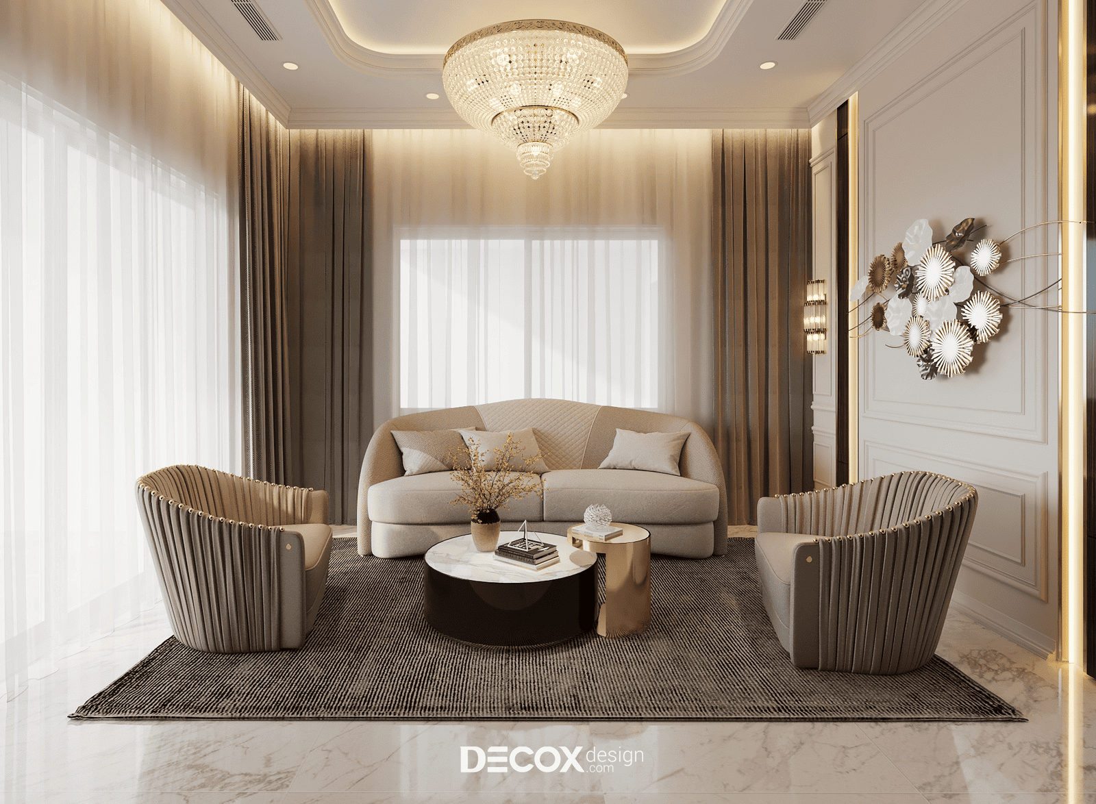 Decox tin rằng, một thiết kế phòng khách đẹp không nằm ở sự phô diễn hình thức, mà ở cách không gian được tổ chức để con người cảm thấy dễ chịu khi bước vào, bình yên khi ở lại và gắn bó theo thời gian. Hãy cùng đi sâu hơn vào các giải pháp không gian qua bộ sưu tập Thiết kế nội thất phòng khách hiện đại của Decox. Tại đây, gia chủ sẽ tìm thấy những không gian được kiến tạo để tôn vinh sự kết nối: Kết nối các thành viên bằng sự tiện nghi, kết nối con người với thiên nhiên bằng không gian mở, và kết nối cảm xúc bằng ngôn ngữ của ánh sáng.
