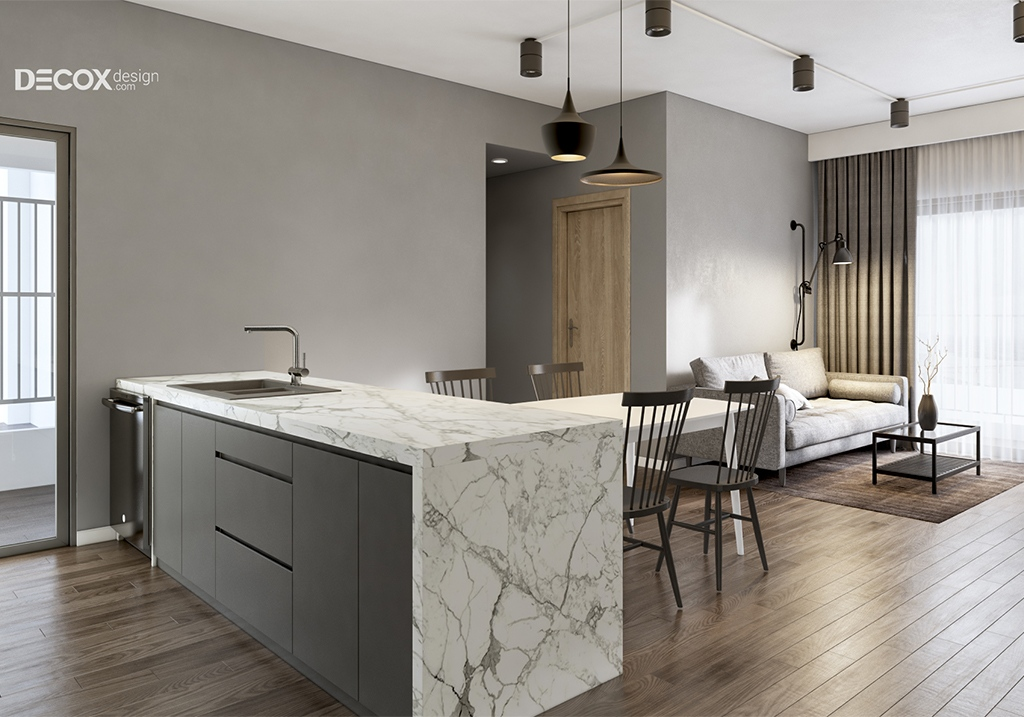 Thiết kế nội thất phòng khách liền bếp
